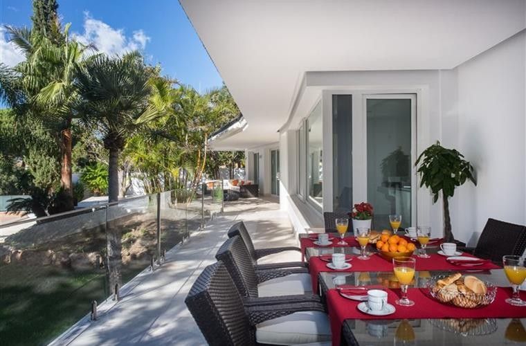 Outdoors you can walk among palm trees and bonsai trees, pick lemons, chilli, mango etc in it lovely garden, or enjoy some morning yoga.Outdoor tennis court for free use is 50 meters away.If the house and garden are not enough in themselves, it is a short way to good restaurants, Elvira is 3 minutes away by car. Shopping can be done in Puerto Banus or at one of the large shopping malls in Marbella that have all brands and other goods. One can stroll to the beach where there are a myriad of different places.