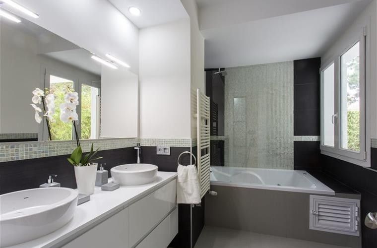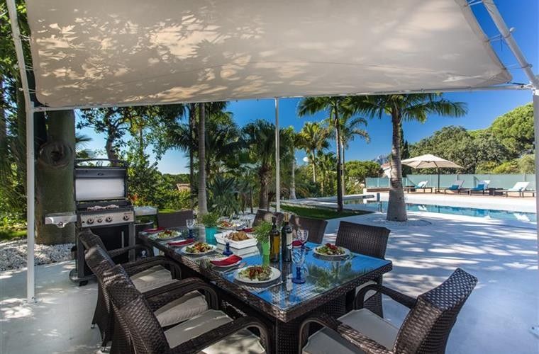 The villa has a private and sheltered garden with a large outdoor pool (100m2) and a sun-screened BBQ area. The villa has high-speed Wi-Fi (also works in the garden), TVs in several rooms and its own “game room” with pool table.