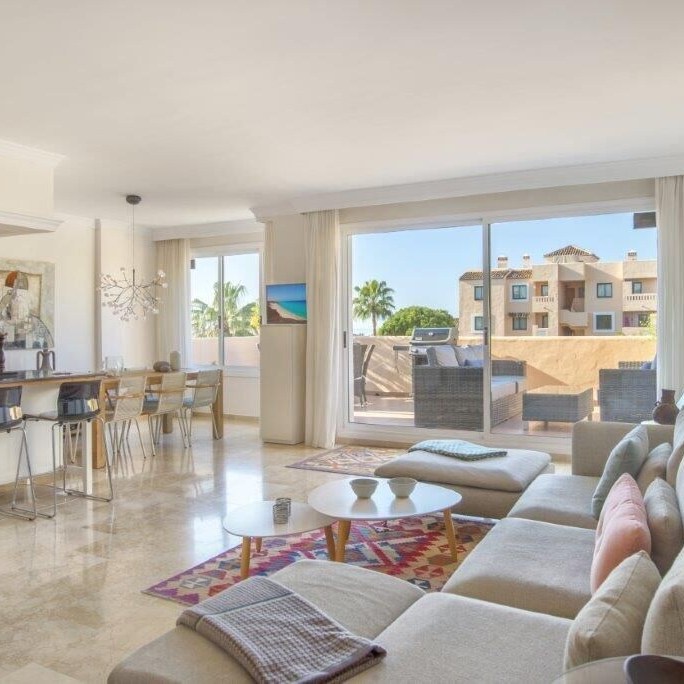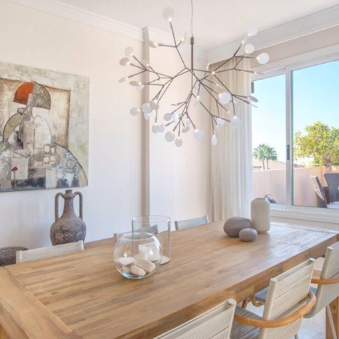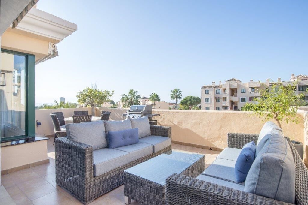 This 114 m2 corner penthouse apartment in 2 nd. floor, with elevator and staircase. The apartment is newly renovated in modern design located in El Manantial, Elviria. Great view over the sea, large terrace with sun all day.