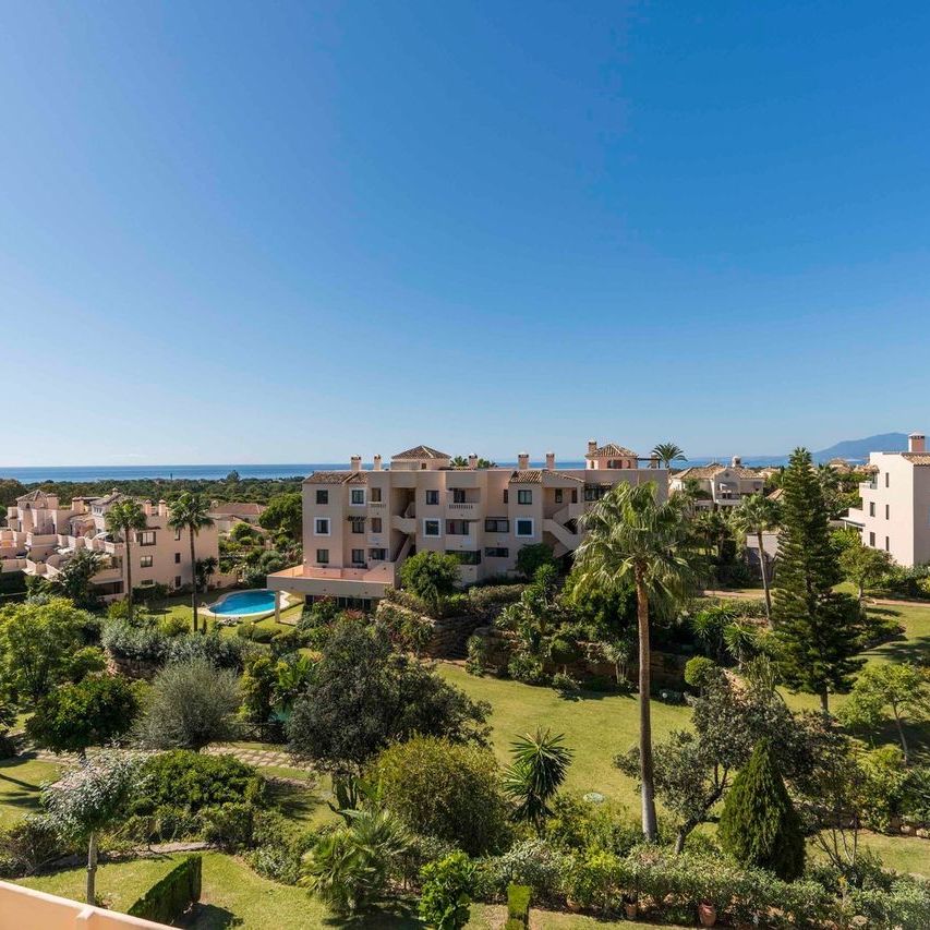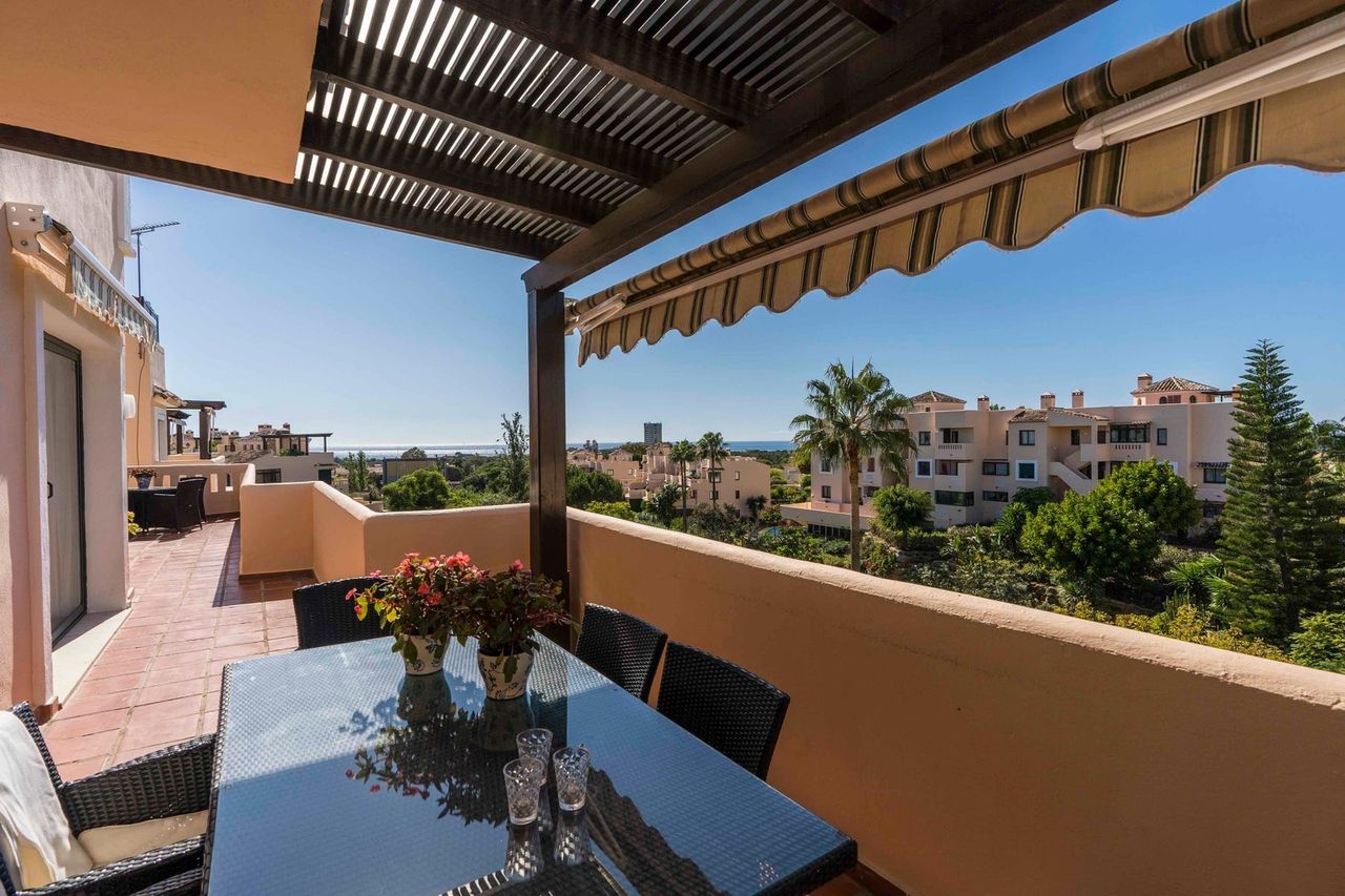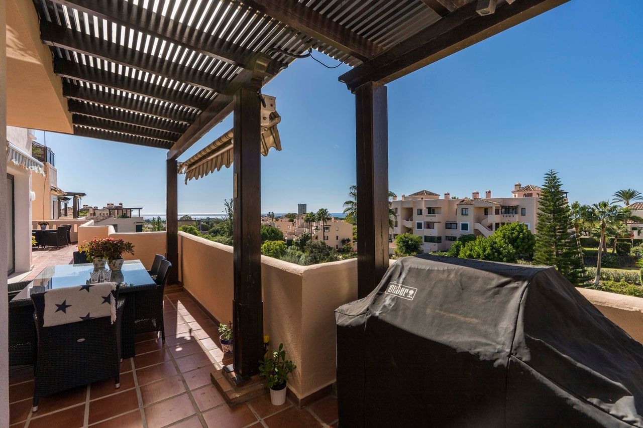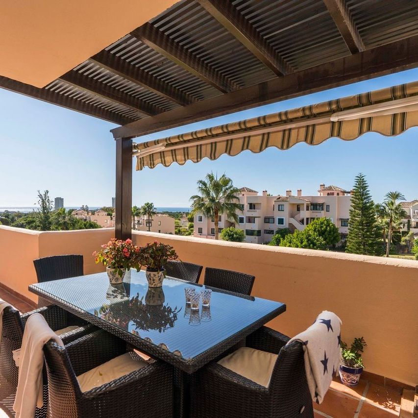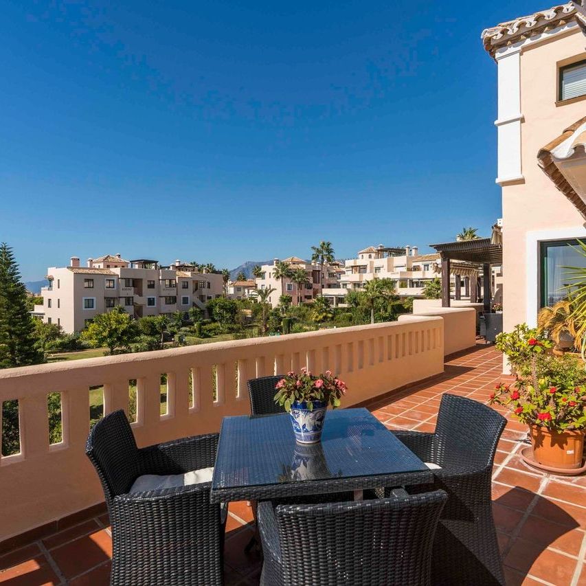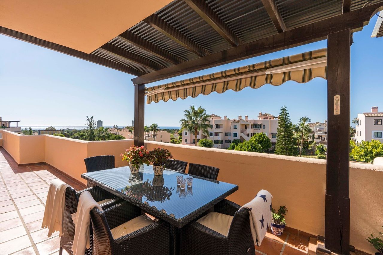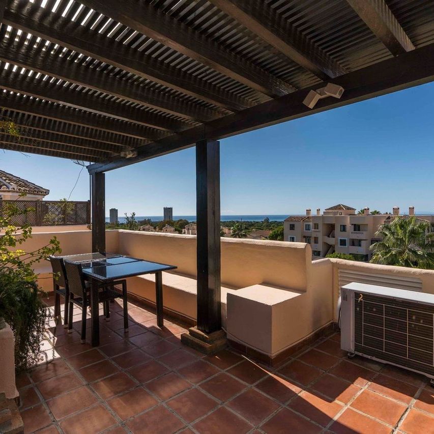 The property is located in the prestigious residential complex El Manantial. The area has won awards for its wonderfully beautiful common areas with several pools and beautiful green areas. The apartment has its own roof terrace with 360 degree views and sun all day. There is also a large terrace with access from the kitchen and living room and outside the bedrooms. Great views of the sea and the mountains behind.