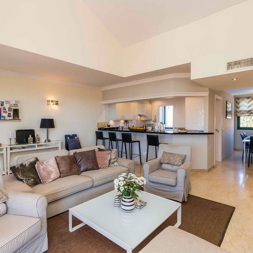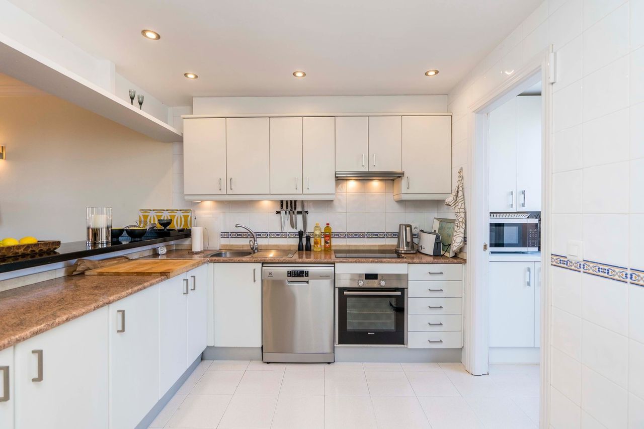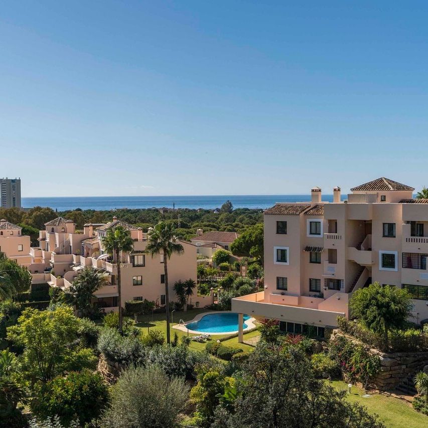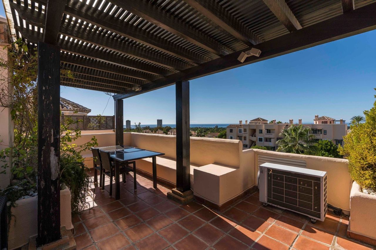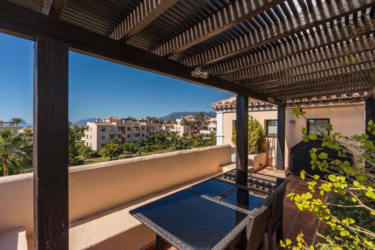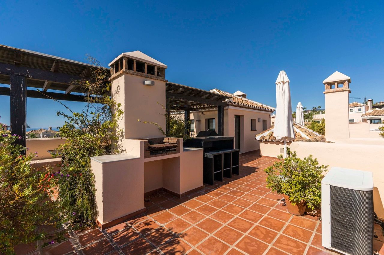 The property is located in the prestigious residential complex El Manantial. The area has won awards for its wonderfully beautiful common areas with several pools and beautiful green areas. The apartment has its own roof terrace with 360 degree views and sun all day. There is also a large terrace with access from the kitchen and living room and outside the bedrooms. Great views of the sea and the mountains behind.
