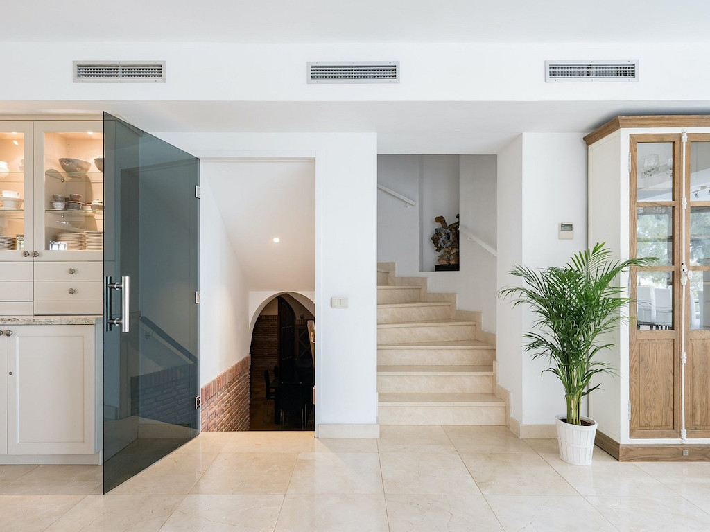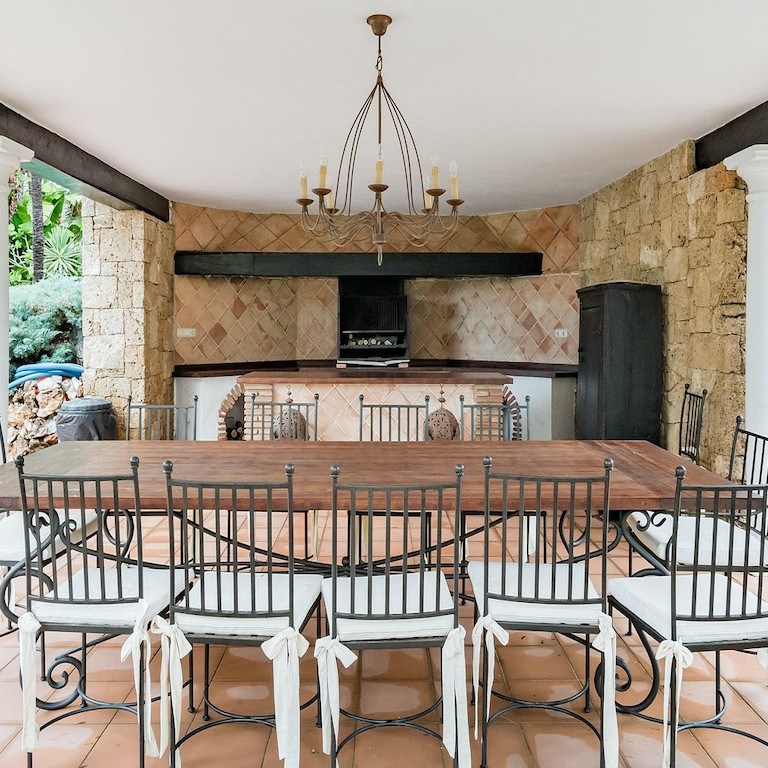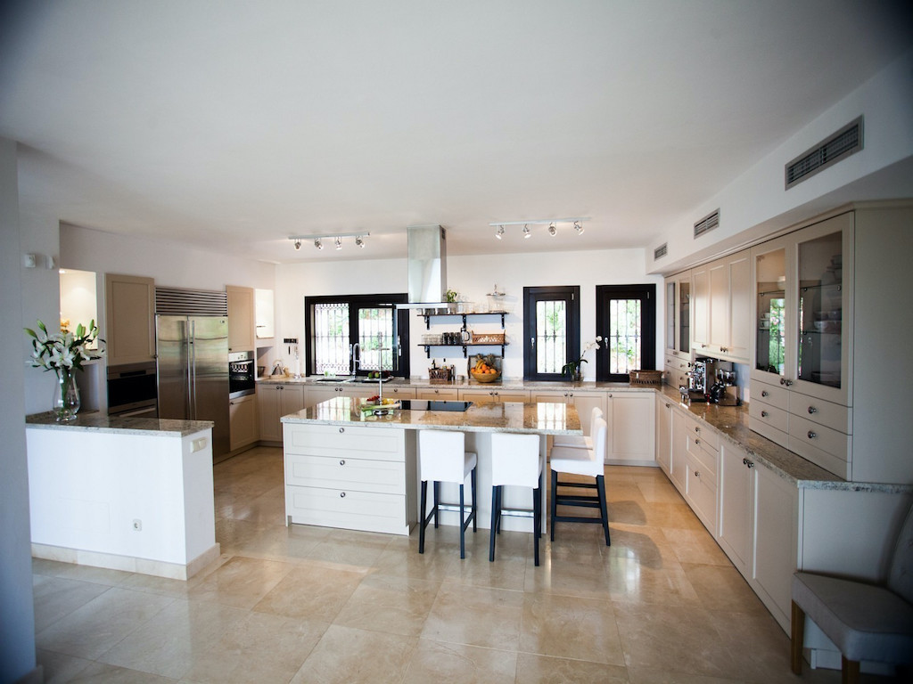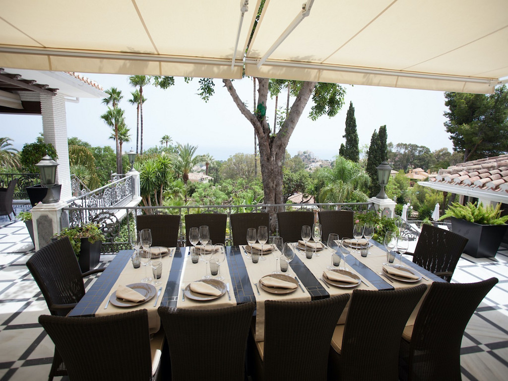 Villa Paradiso newly renovated house with a very high standard and all imaginable facilities. Swimming pool with heating. The villa of 700m2 is perfect for 2-3 families, company events, family anniversaries, strategy gatherings or golf trips. Panoramic sea views. AC in living room and all 6 bedrooms. Maid service 2 hours per day. Catering can be arranged with hired chefs. Come to a pre-filled refrigerator – purchases are made according to your shopping list. Saltwater pool with pool bar, music system and outdoor shower. Barbecue house and fish ponds. Wine cellar. Many large terraces. Located in urbanization with patrolling night watchman The entire property is surrounded by high stone walls.