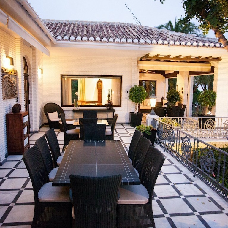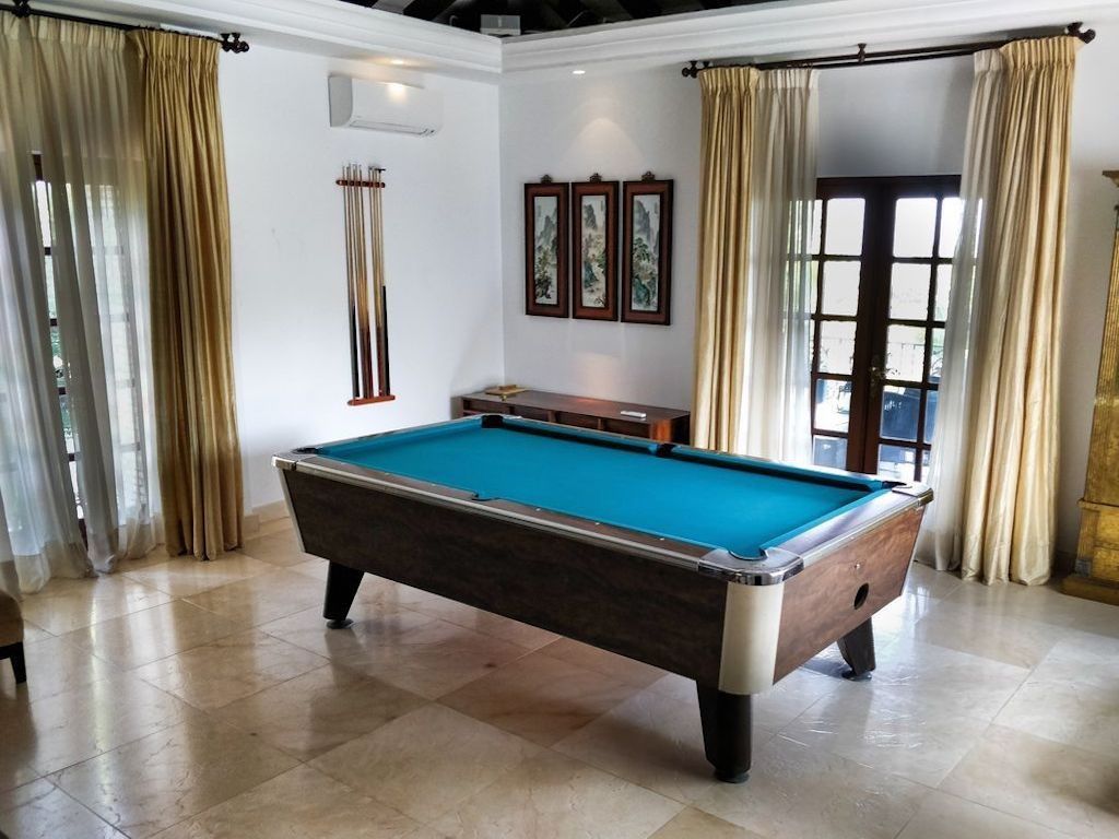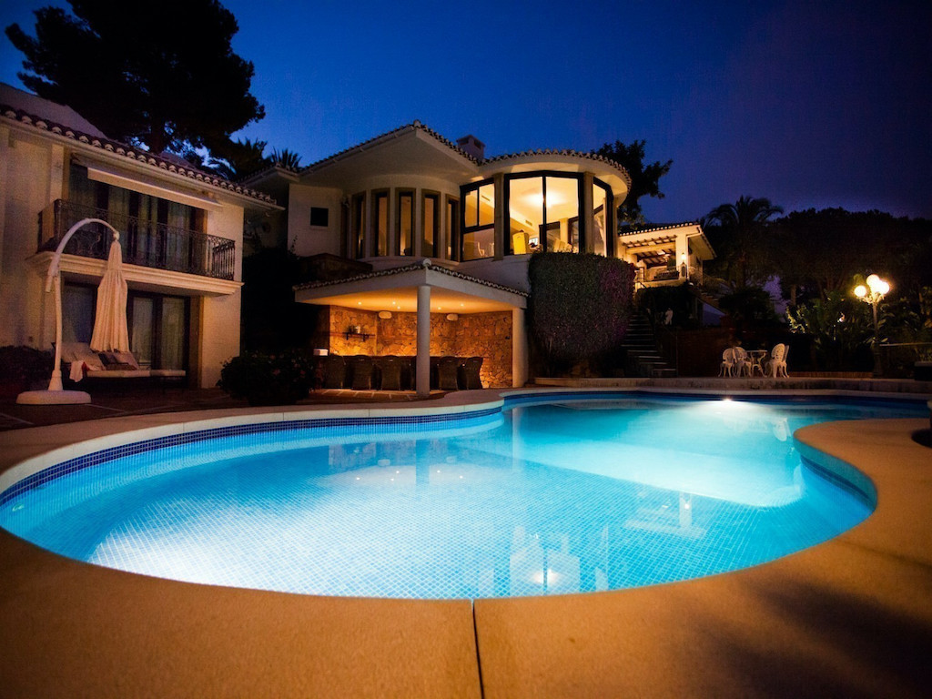 Sonos music system on terraces, in pool bar, upper terrace and library / bar. Controlled from your iPhone / iPad / Android Saltwater pool Outdoor shower by pool Sauna Living room, kitchen and all bedrooms have installed air conditioning. Outdoor antenna for wireless internet is installed to provide internet coverage in the garden and large parts of the house. 2 meter high wall around the entire property which provides very safe stay, and no danger of small children leaving the property. Weekly rentals are primarily Saturday to Saturday – but are flexible in low season