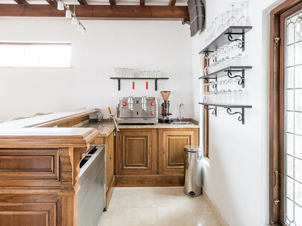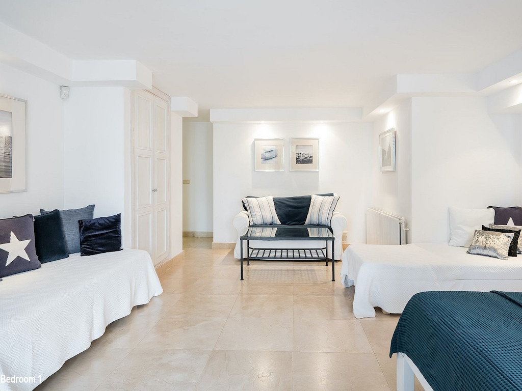 The apartment is an integral part of the house. Bedrooms 5 and 6 can also function as being closed off from the rest of the house and used as a guest apartment with its own kitchen and separate entrance. All bedrooms have 2 beds. In addition, there are 3 extra beds, 2 cots for children and a travel cot that can be placed as desired. There are also high chairs and child car seats available in the house. The house contains: 2 very spacious living rooms Library with bar and espresso machine Open kitchen with dining area 2 guest toilets Back garden with dining area and gas grill Barbecue house with dining area and charcoal-fired grill Pool bar with fridge
