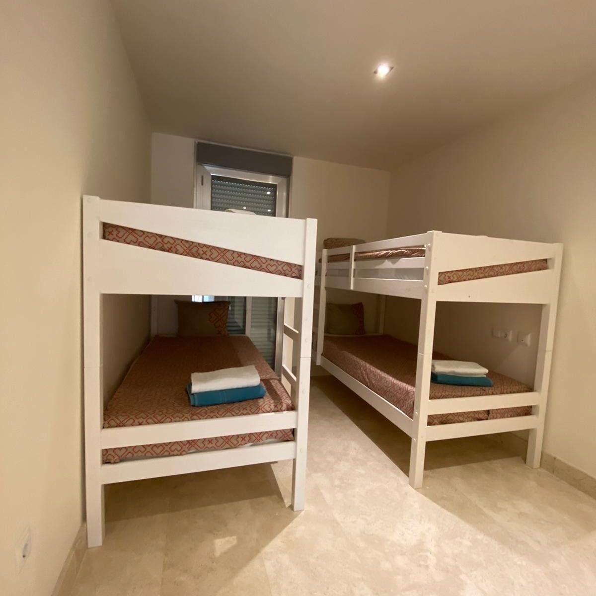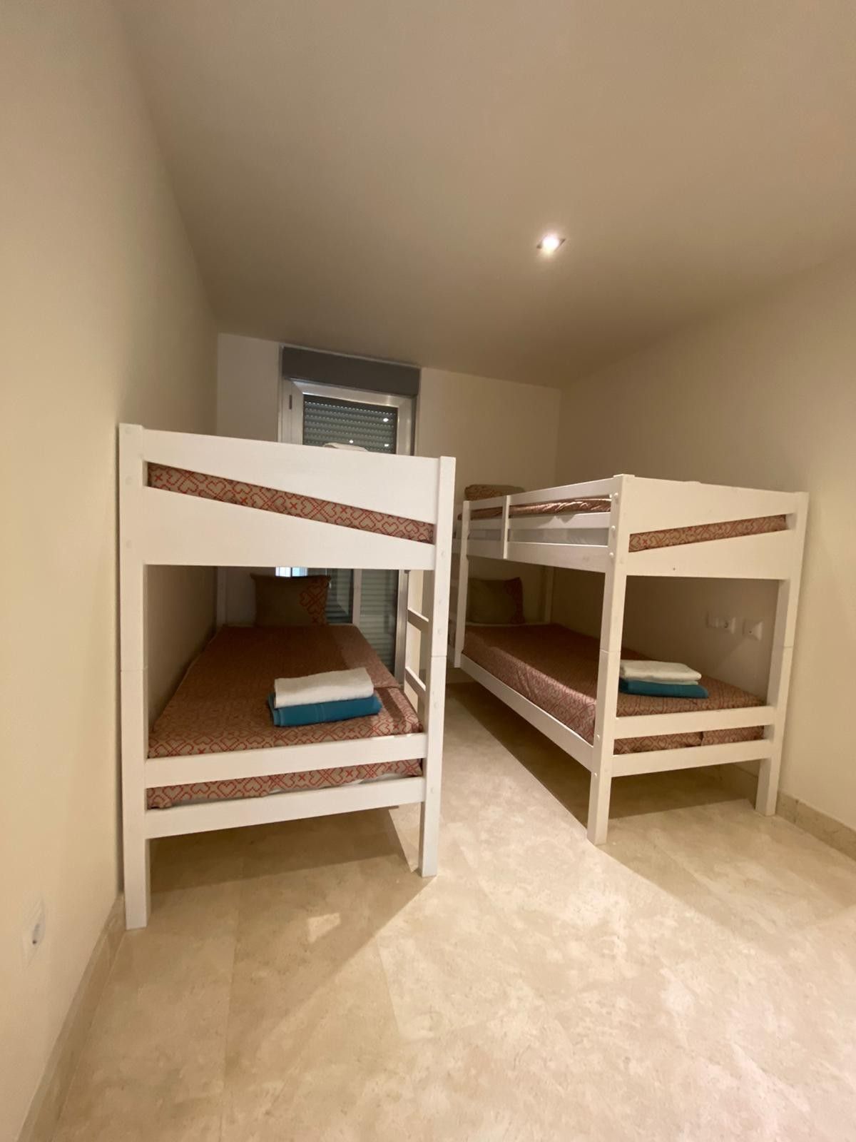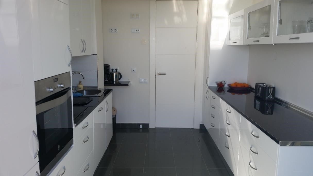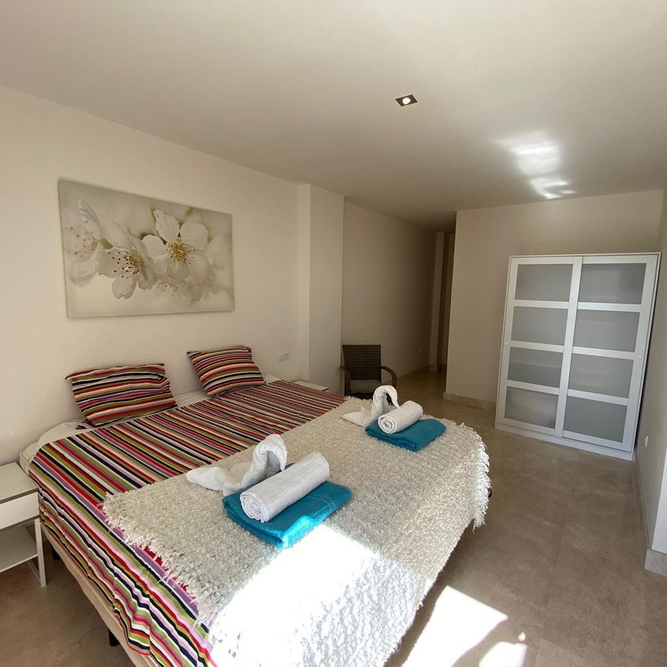 Here is an incredible view, where you can see both Gibraltar and the African continent in one direction, and Estepona / Marbella in the other direction. Adjacent to the kitchen there is also a separate small laundry room which contains a washing machine. It is invested in good beds (180 cm wide) in all bedrooms, except for the last bedroom which contains bunk beds. The bedrooms contain an efficient glare system that makes it possible to get it completely dark in the rooms. The most beautiful beaches are located one kilometer from the apartment. There are also beach bars, boat and jet ski rentals and bouncy castles for the kids.