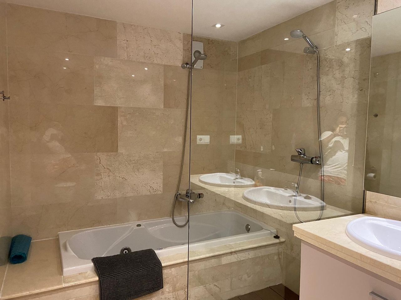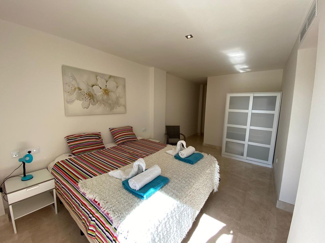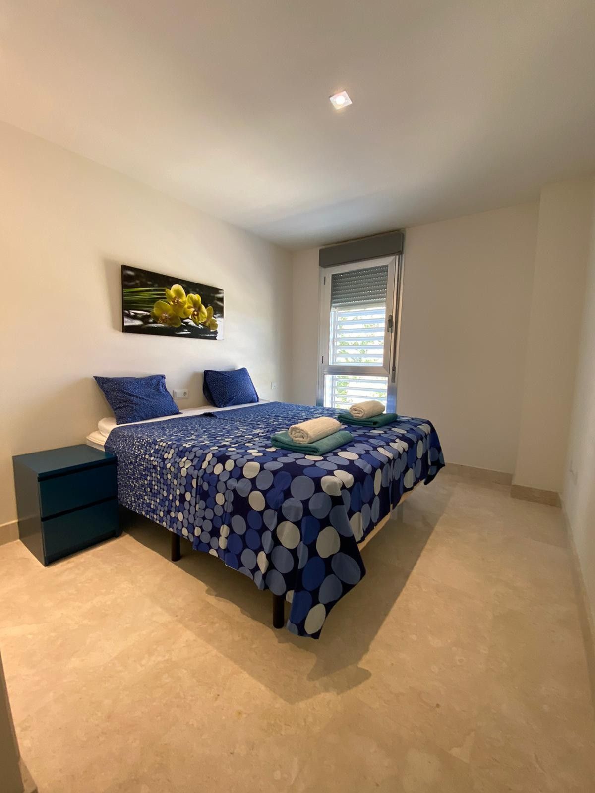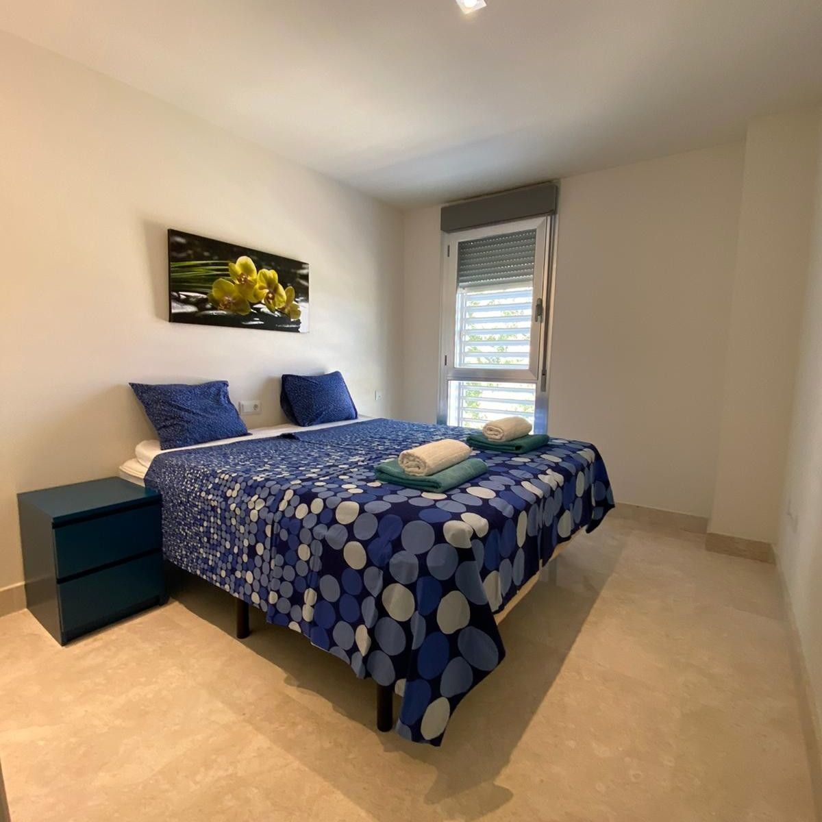 Here is an incredible view, where you can see both Gibraltar and the African continent in one direction, and Estepona / Marbella in the other direction. Adjacent to the kitchen there is also a separate small laundry room which contains a washing machine. It is invested in good beds (180 cm wide) in all bedrooms, except for the last bedroom which contains bunk beds. The bedrooms contain an efficient glare system that makes it possible to get it completely dark in the rooms. The most beautiful beaches are located one kilometer from the apartment. There are also beach bars, boat and jet ski rentals and bouncy castles for the kids.