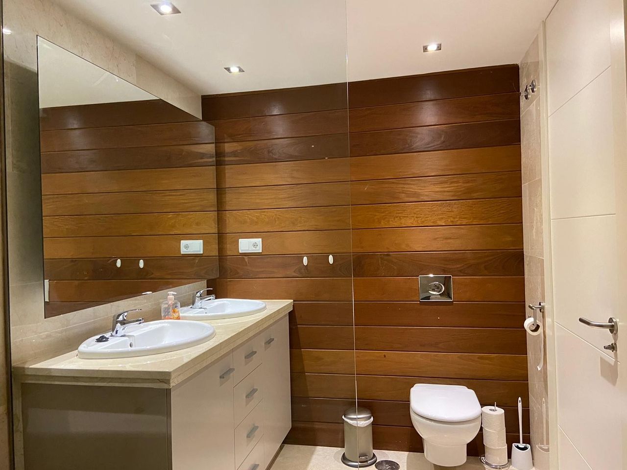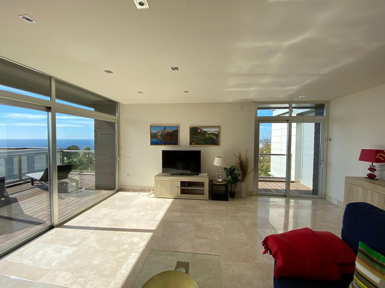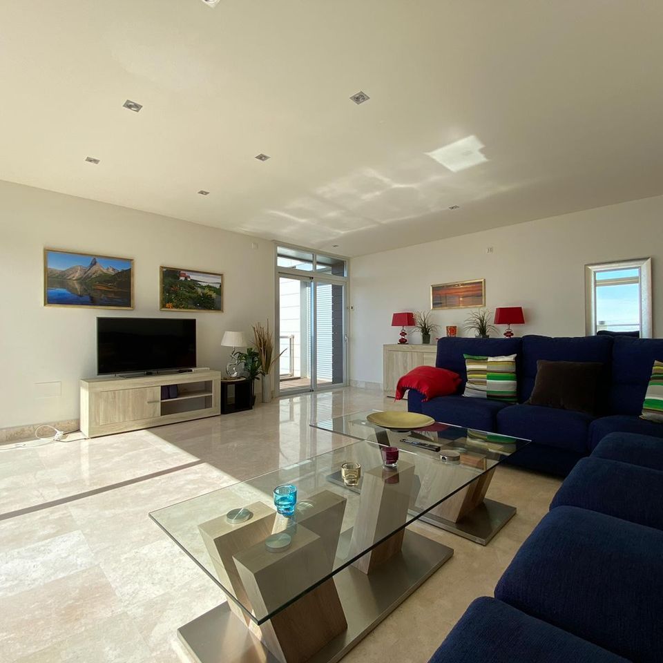 The area is very family-friendly. It is a quiet and peaceful residential area, completely without noise from traffic. The air conditioning system is comfortable and provides good comfort throughout the apartment, and in all bedrooms. It is inlaid fiber which gives many users good internet access! The living room has marble floors and has a large sofa with seating for 7-8 pieces. The apartment contains a new kitchen with Scandinavian functionality. It is richly equipped and has all the necessary features for a comfortable stay. From the kitchen you can go straight out onto a 40 m2 veranda and enjoy breakfast.