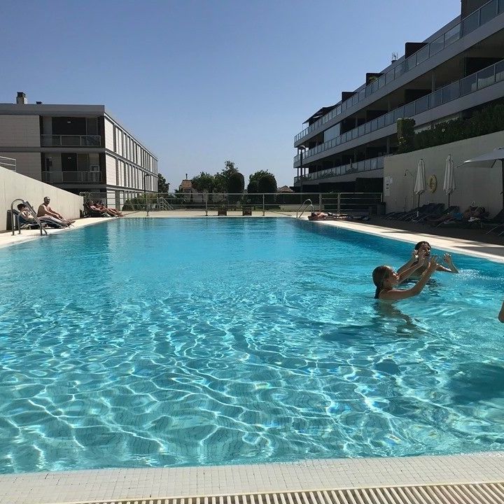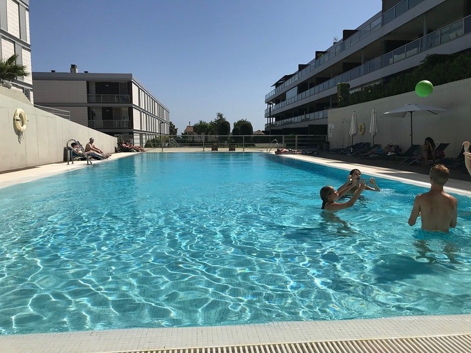 There are two parking spaces in the garage under the apartments, with a lift from the garage and right up to the front door. We only have one neighbor in our upstairs, and Josè who lives there speaks English and receives our tenants. He is helpful if any questions arise during the stay. There are countless opportunities for sunbathing and swimming along the beaches. The picture shows Torreguadiaro, 7 min. to drive from the apartment. Here you can rent sun loungers, and enjoy food and drink at several beach bars. In high season there are bouncy castles for the kids at sea, and jet ski rentals for the whole family.