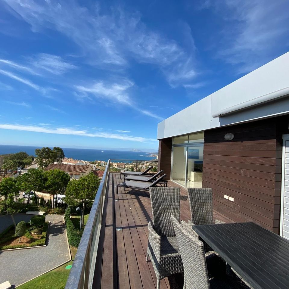 Welcome to a fantastic apartment on the Sun Coast. The penthouse is located midway between Marbella and Gibraltar, 1 km from the beach, with an incredible view of the Mediterranean. The apartment is richly equipped with plenty of space for 10 people. The pool area contains sun loungers, parasols, showers and an impressive pool of 30 x 10 meters. The pool is located 50 meters from the lift, and is experienced as clean and well kept. Gardeners mow grass and tend hedges and trees so that the entire plant appears very well maintained.