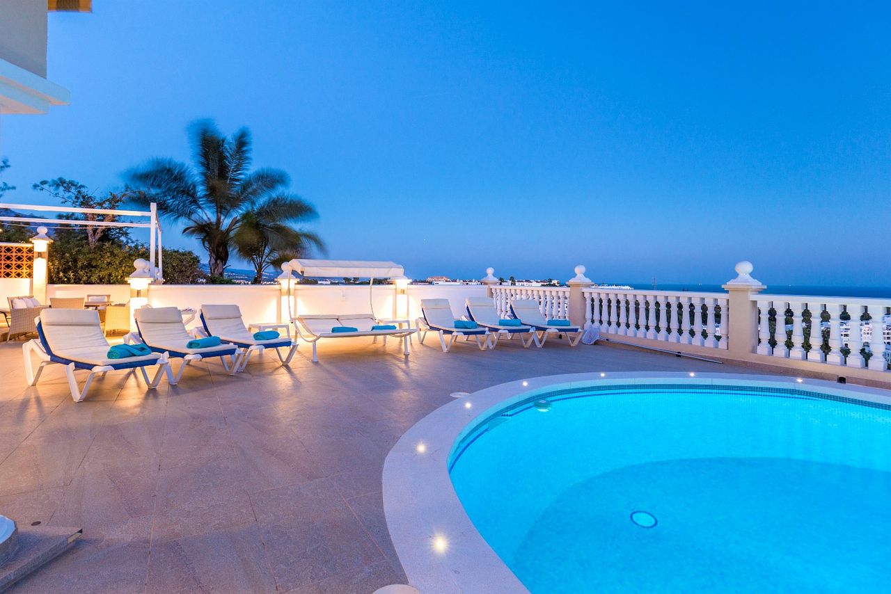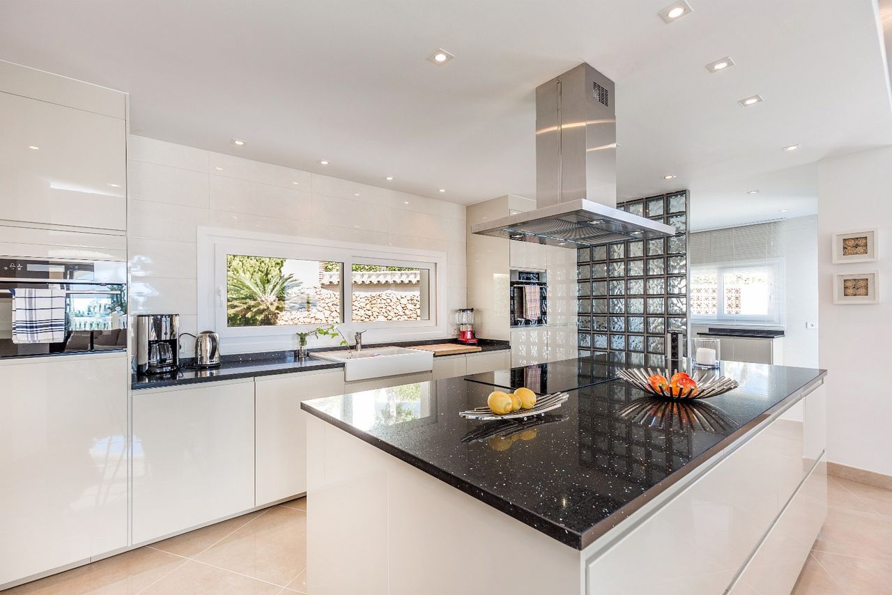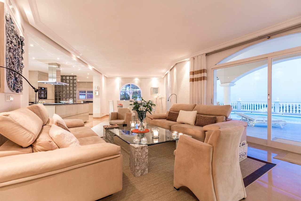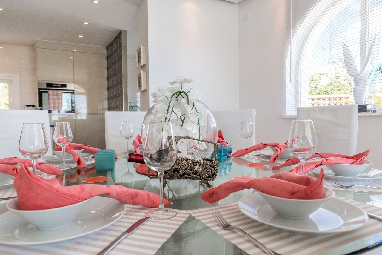 AIR CONDITIONING IN THE ENTIRE VILLA, HEATED POOL (for an additional fee) AND WIRELESS FIBER NET. Secluded spacious and luxuriously furnished villa with 12 beds Sun from morning to evening New large tiled outdoor area – terrace – with many sitting groups – sun loungers and a 15 meter pool on the terrace. BBQ with Weber grill – fireplace – refrigerator – washing machine – Down Lights – music Perfect for atmospheric cool evenings with good food – wine and dim lighting from the terrace and pool.