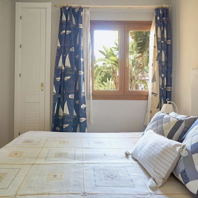 There are 3 bedrooms; Master bedroom with double bed, separate TV, and exit to the terrace with private bathroom and wardrobe / hallway, the other two; double bed. One of these also has a balcony. In addition, there are 2 folding cots with mattress and duvet and pillow. Fully equipped with delicate linen, towels, etc. Ample closet space in each room. Kitchen and bathroom equipped with all necessary modern equipment. There is also a lot of children’s equipment in the apartment that can be borrowed.