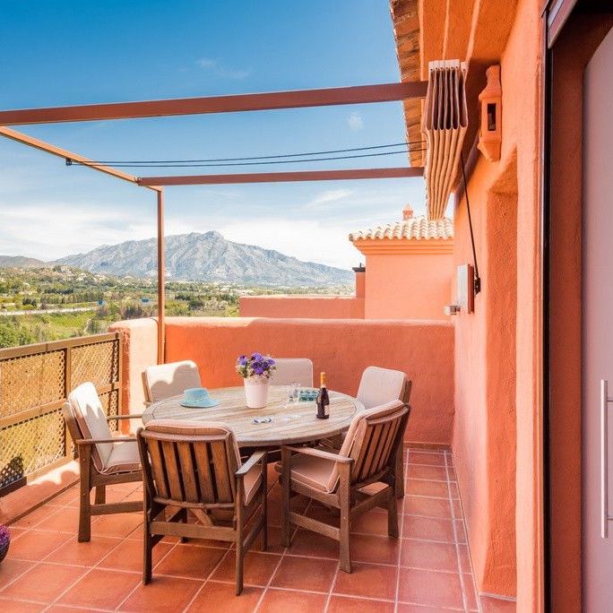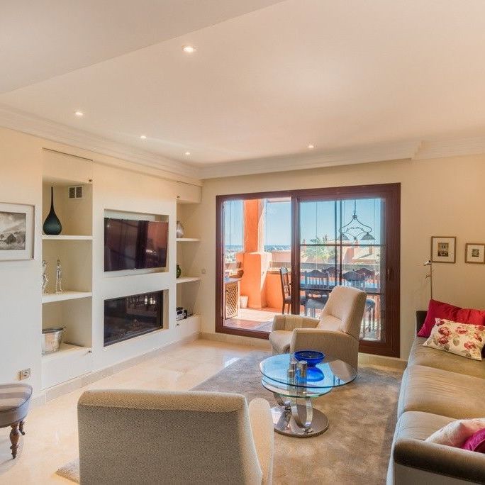 For prices and availability please Pm us !!!Beautiful and very well-equipped penthouse on two floors at San Pedro de Alcantara and Puerto Banus. The apartment is located south-north with two terraces to the south and one to the north. Here is 6 beds, but also room for a couple of extra beds.On the ground floor of the apartment there is a well-equipped kitchen and exit to the laundry room.
