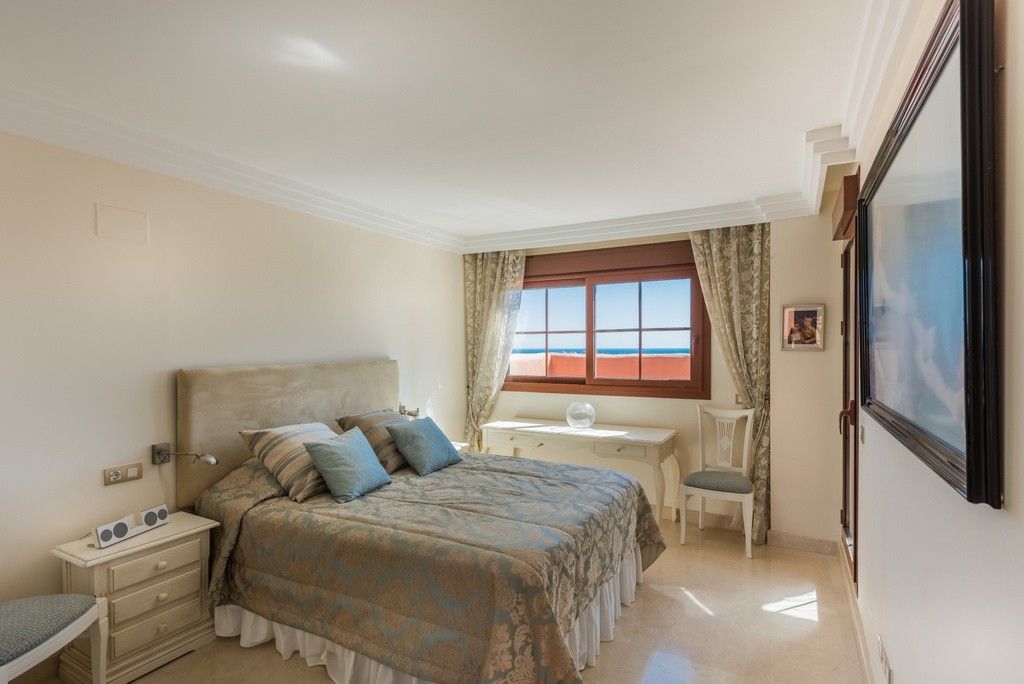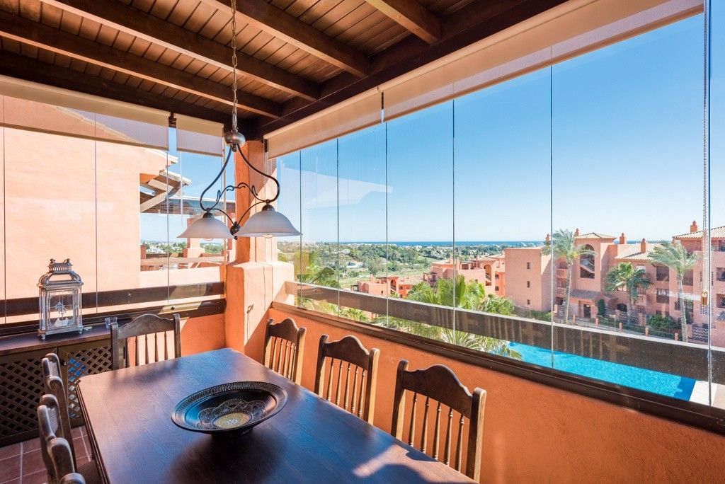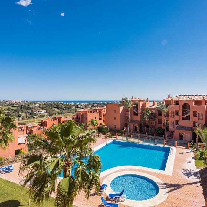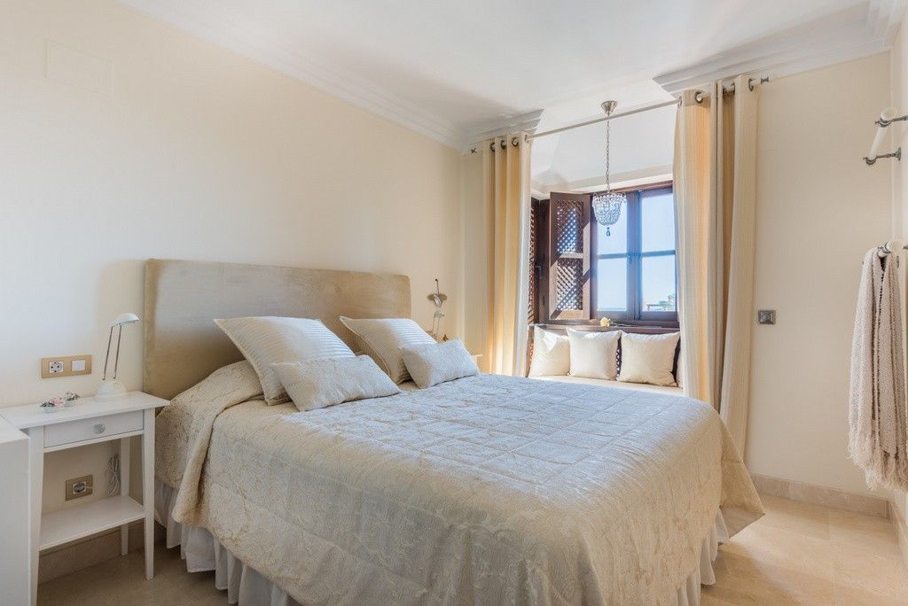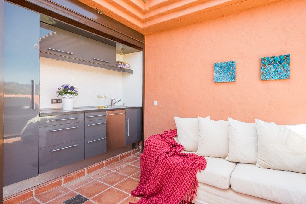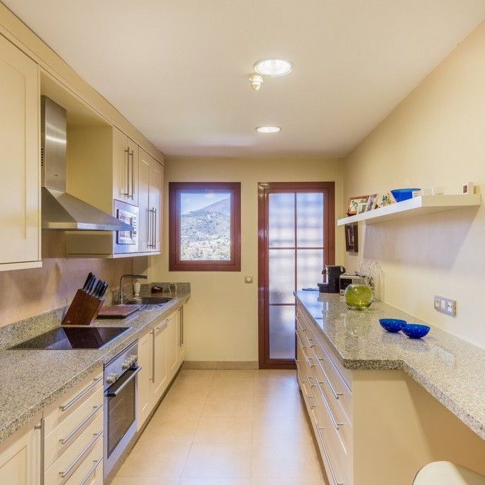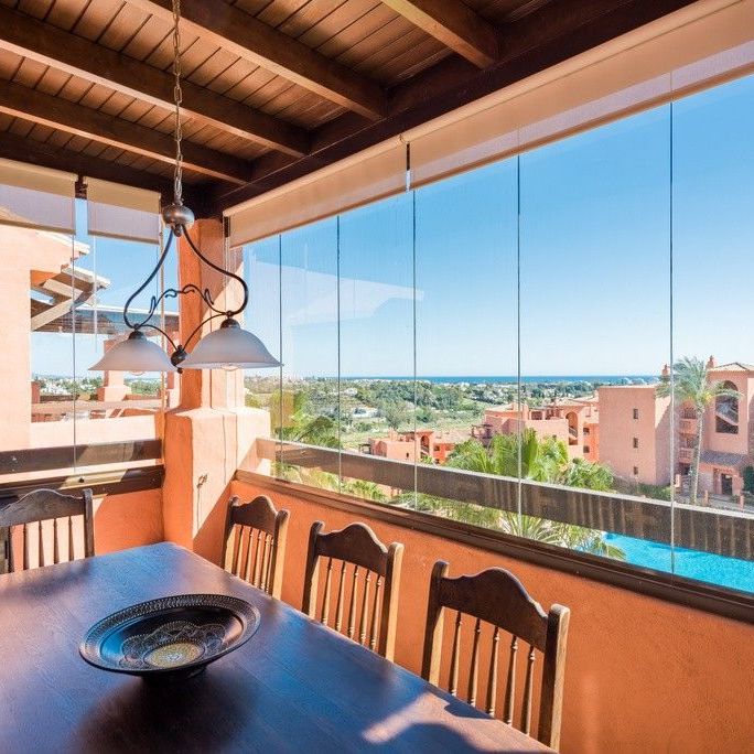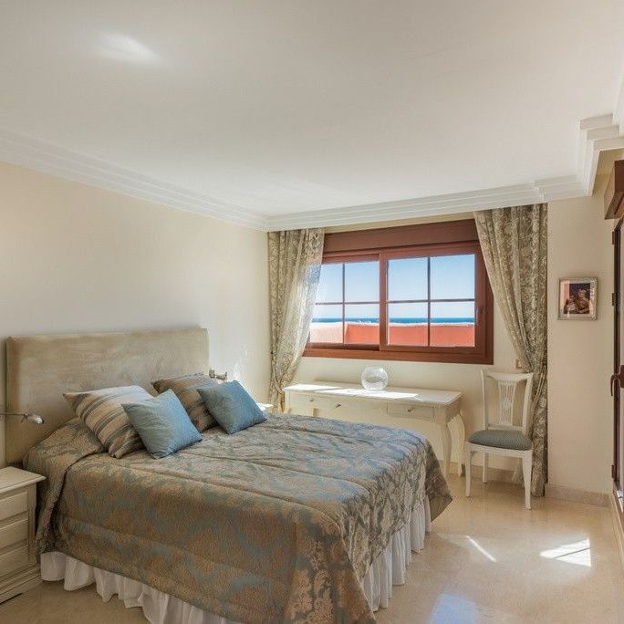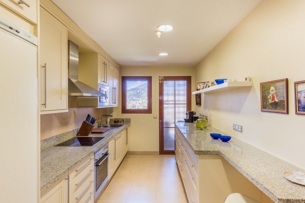 To the south is a partially covered sun terrace with fantastic views of the Mediterranean – in clear weather you can also see the Strait of Gibraltar and Africa.Two parking spaces in a beautiful garage, storage room for storage of golf equipment, suitcases etc. Elevator. There is of course air conditioning in the apartment, and wireless internet.
