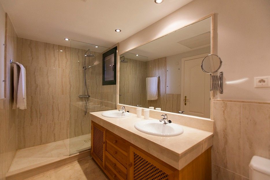 The complex is fenced and locked with several swimming pools and beautiful gardens. Nearest pool is right outside the kitchen balcony. The location, furnishings and spaciousness await you who are looking for a resort in Elviria. The apartment is within walking distance of Nikki Beach Marbella, The Beach House, The Don Carlos Hotel.