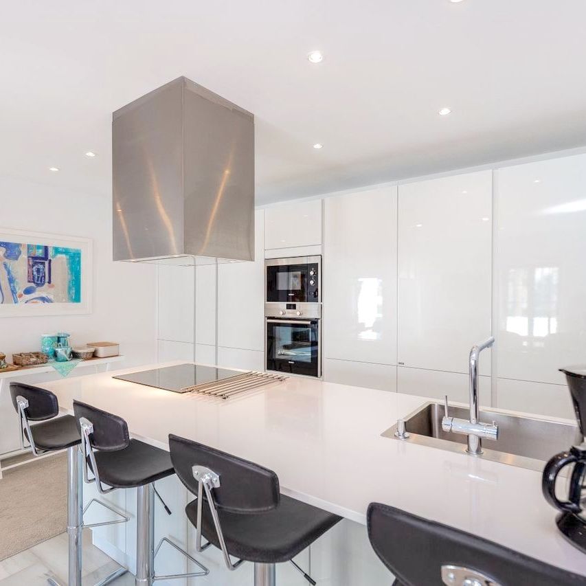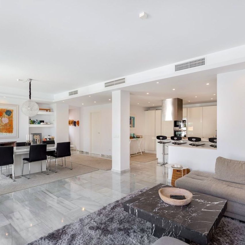The apartment, which is completely renovated consists of 3 bedrooms, each with its own bathroom. It has a new kitchen with all equipment, new bathroom w / heating cables, Washer and dryer, hot and cold air conditioning for living room, kitchen and all bedrooms, large living room with separate dining room.