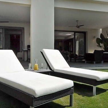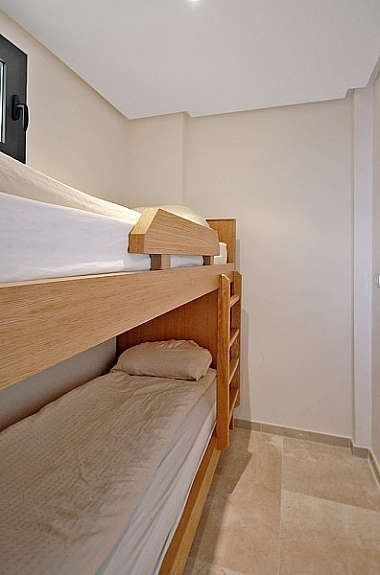 There are 3 bedrooms, 2 large with double bed, attached bathroom and air conditioning, and one smaller bedroom with bunk bed.