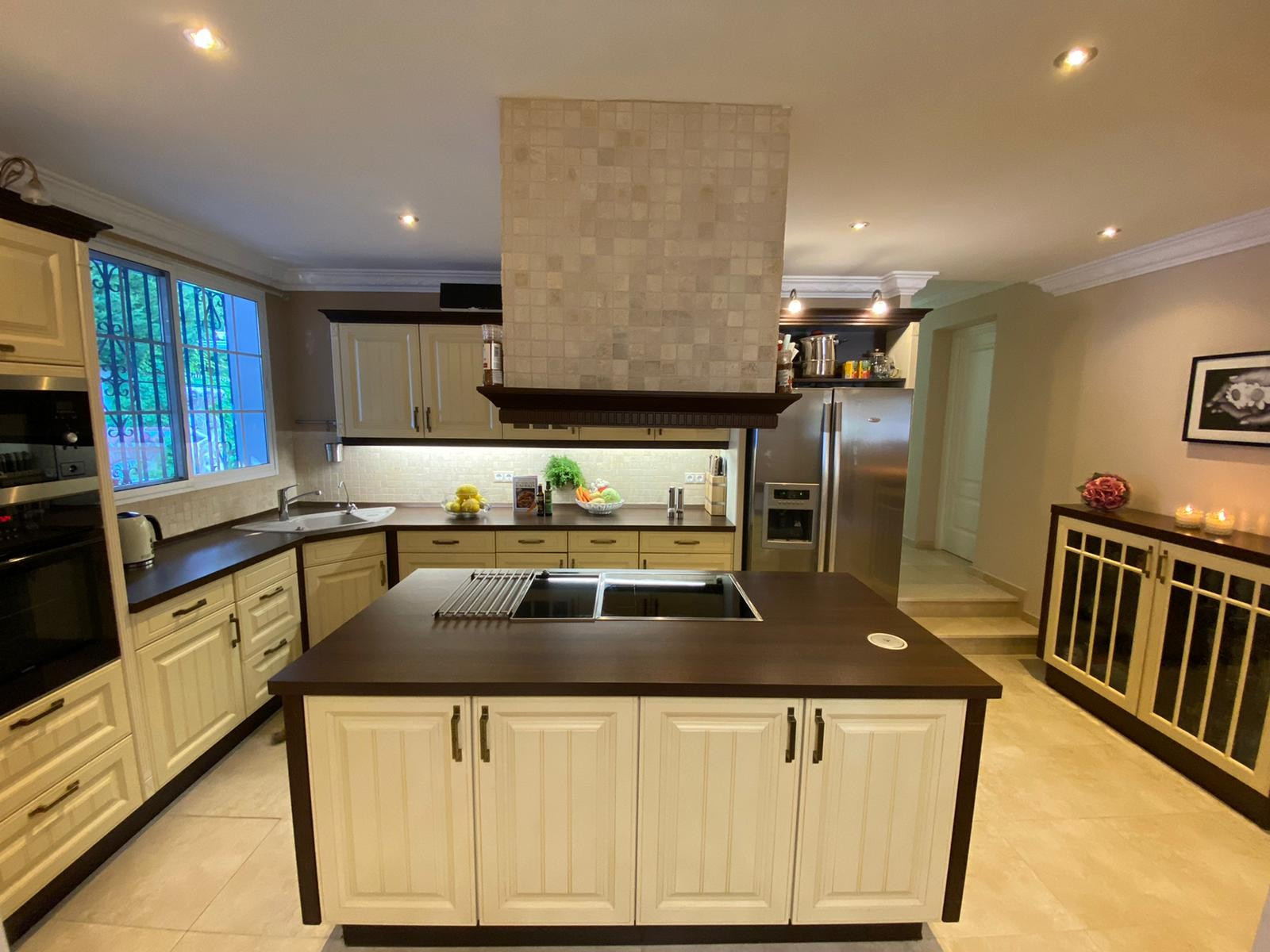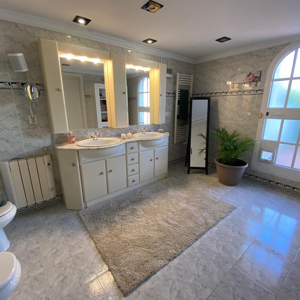 . There is more than 100 square meters of terrace around the house, and a large saltwater pool. The villa faces south, so the garden, terrace, pool and patio have sun all day. The villa is just a 5 minute drive or 20 minutes walking distance to Fuengirola’s many sandy beaches and the seafront (paseo maritimo).
