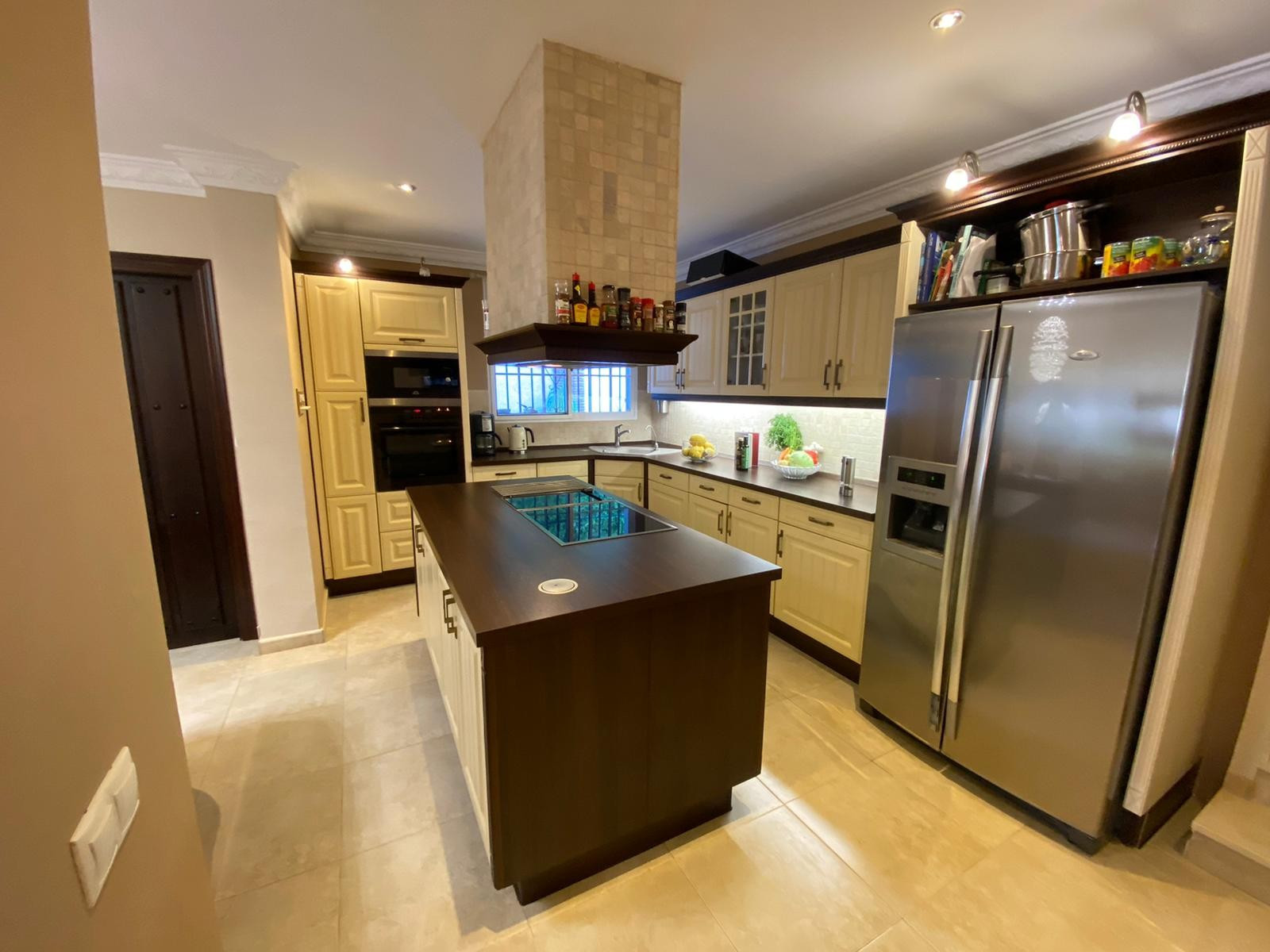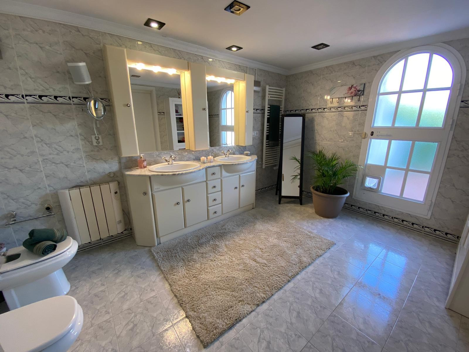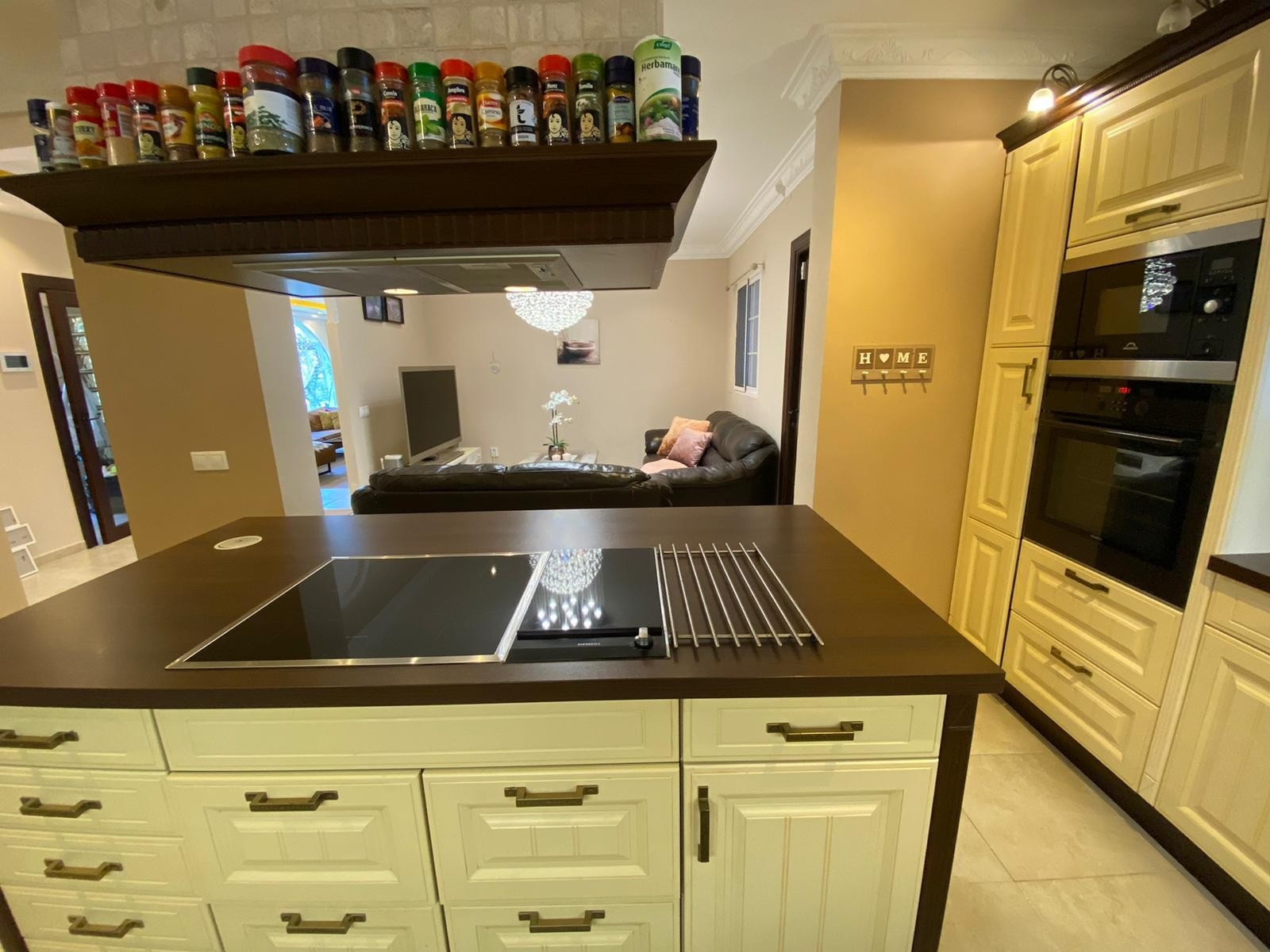 A large bright living room that contains an 85´TV with Danish, Norwegian, Swedish, English and Spanish channels, and several movie channels, with Sonos sound system inside and out in the pool area, dining table for 8 people and a large lounge. Aircon in all bedrooms, bed linen, towels, Weber gas grill, outdoor furniture, 6 sun loungers and sofa groups by the pool. There are 3 bedrooms with double beds, 3 bathrooms all with shower. Code lock on front door, camera and door opener.