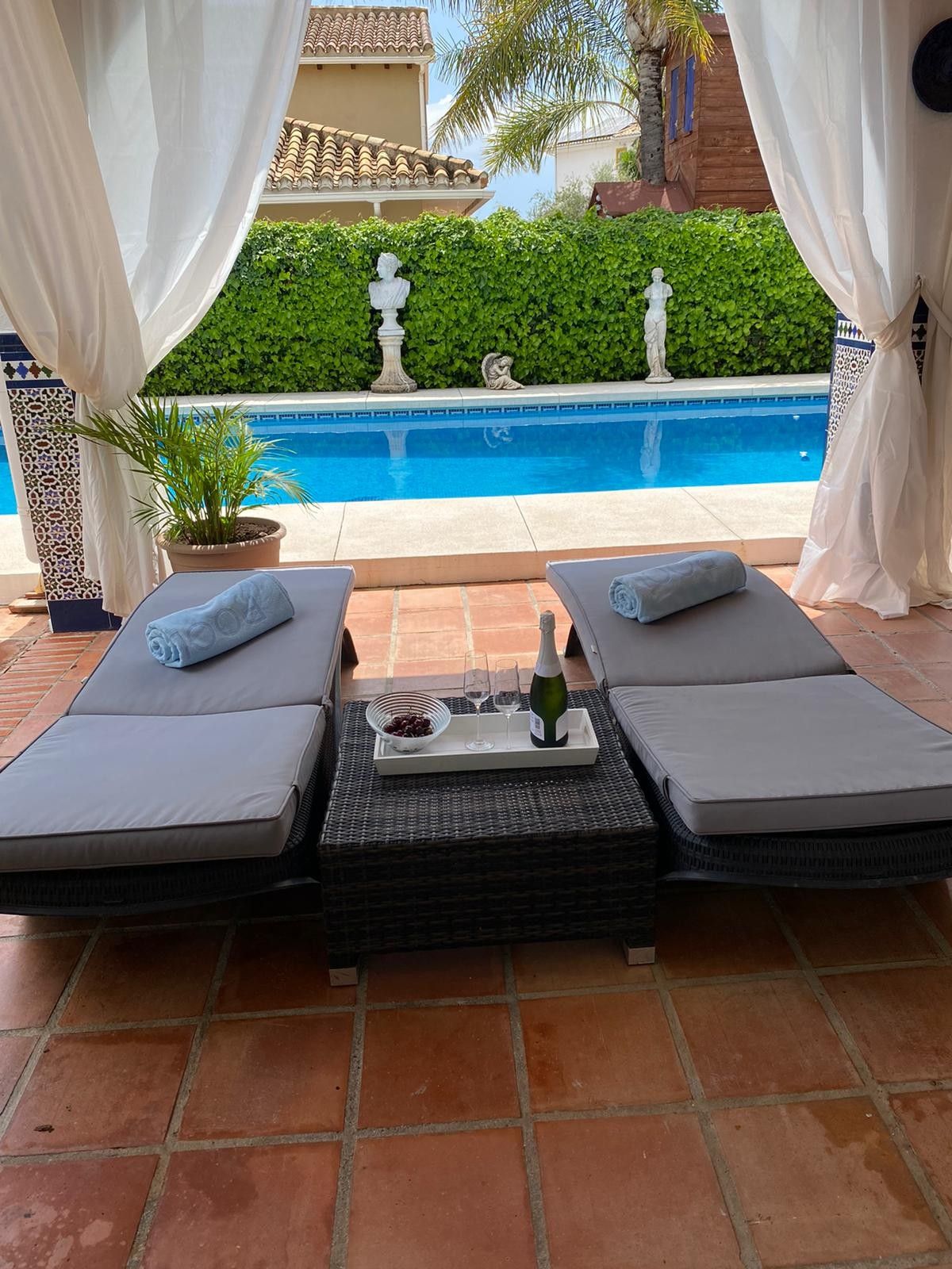 Fantastic villa on one level overlooking Fuengirola. The villa is located in a quiet residential area. The villa is built in typical Andalusian style. All bedrooms have high quality beds. There is also air conditioning (cold and hot) throughout the house and WIFI. The villa has all the amenities you would expect in a home. Kitchen with dishwasher, fridge / freezer, stove, microwave, toaster, coffee maker, kettle, etc. Laundry room with washer and dryer.
