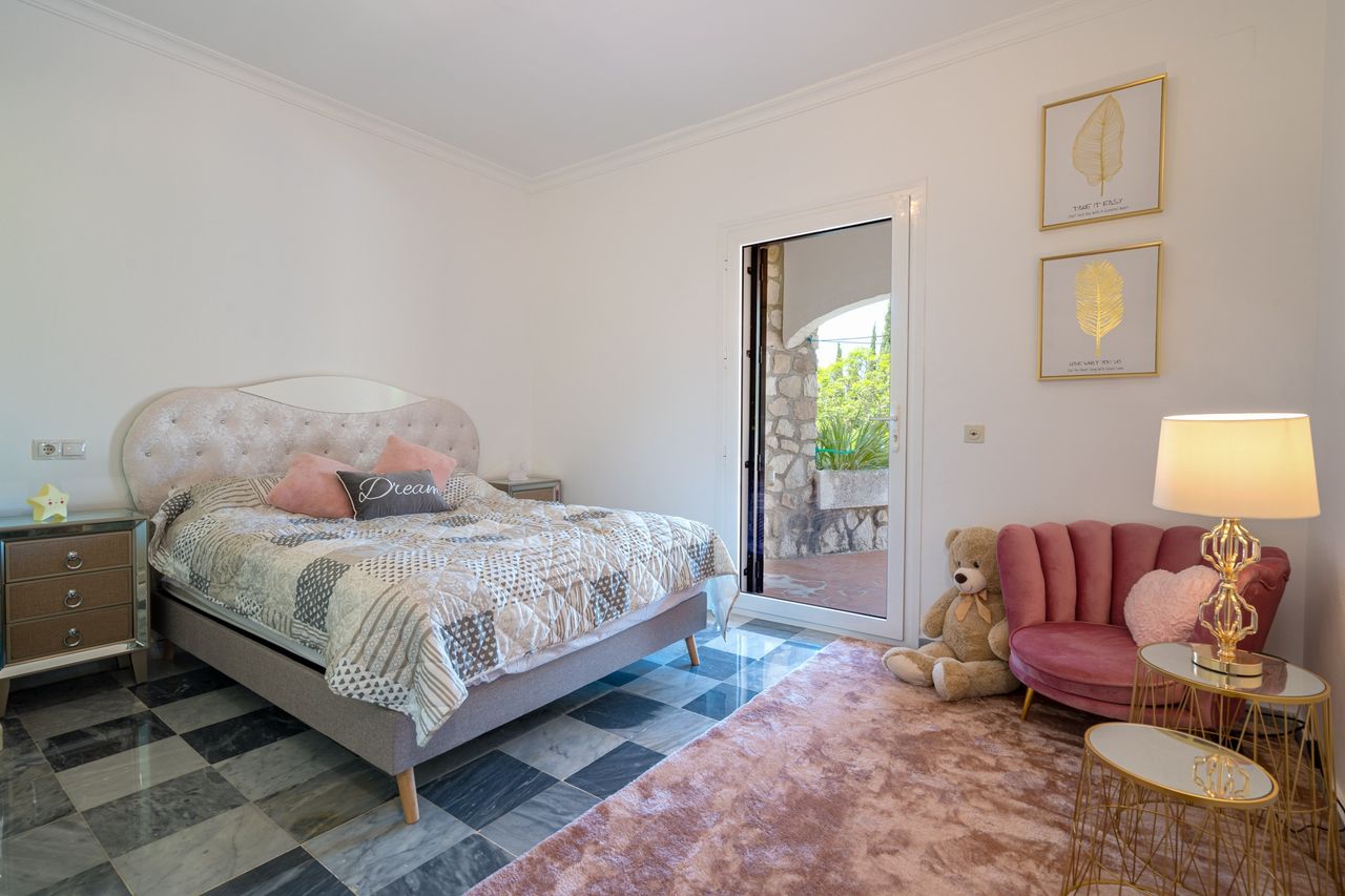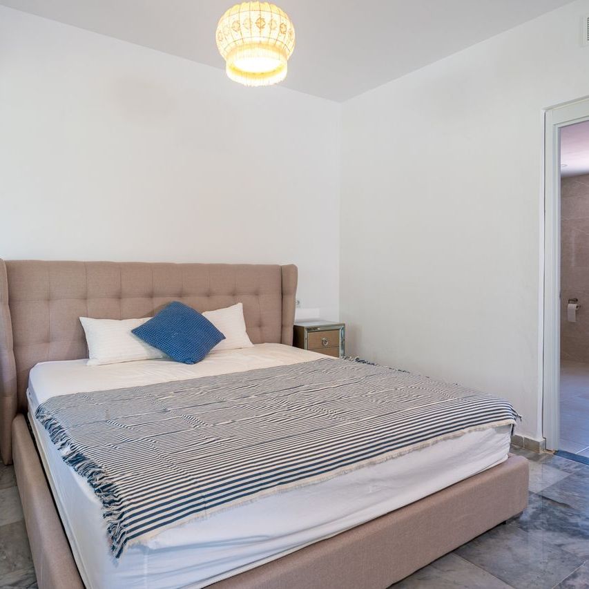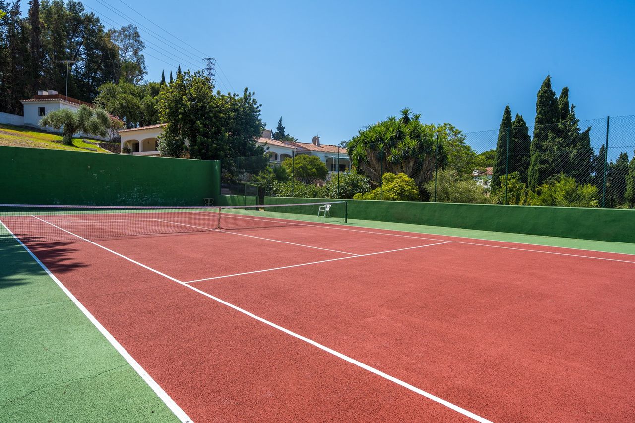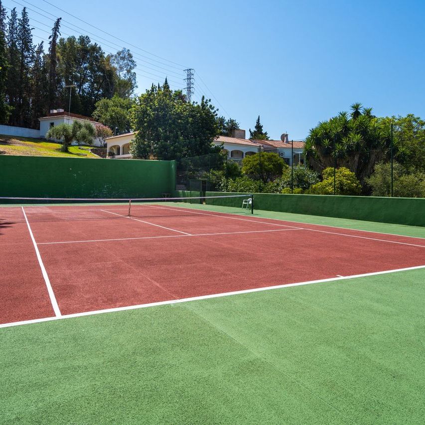 Very nice house with large plot, balcony, terrace, large private pool and private tennis court with hardcourt for rent.The villa also has a large and beautiful garden with fruit trees.Internet in the house.Garage and parking space.Closer to Fuengirola and Mijas.Immediate proximity to Lew Hoad Tennis Club with several tennis courts and paddle tennis. About 15 minutes from Malaga airport.The swimming pool is deep along its entire length and is best suited for disabled people.Close to golf courses.Living room with large corner sofa, dining area and TV / Apple TV.Kitchen with all appliances.Three bathrooms with shower and toilet. Washing machine