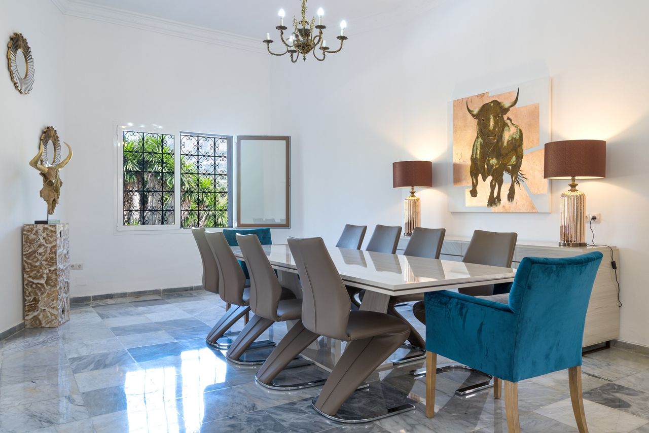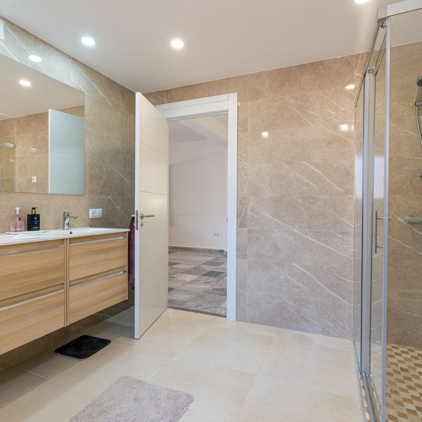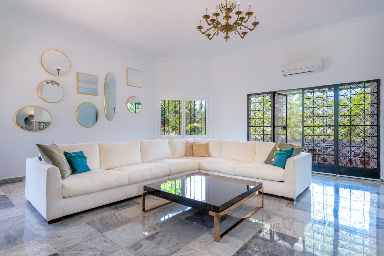 Very nice house with large plot, balcony, terrace, large private pool and private tennis court with hardcourt for rent.The villa also has a large and beautiful garden with fruit trees.Internet in the house.Garage and parking space.Closer to Fuengirola and Mijas.Immediate proximity to Lew Hoad Tennis Club with several tennis courts and paddle tennis. About 15 minutes from Malaga airport.The swimming pool is deep along its entire length and is best suited for disabled people.Close to golf courses.Living room with large corner sofa, dining area and TV / Apple TV.Kitchen with all appliances.Three bathrooms with shower and toilet. Washing machine