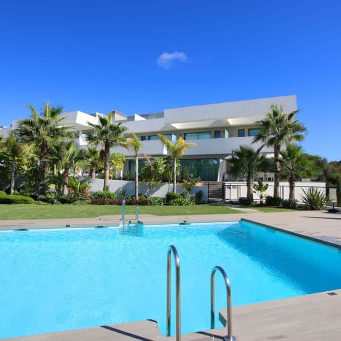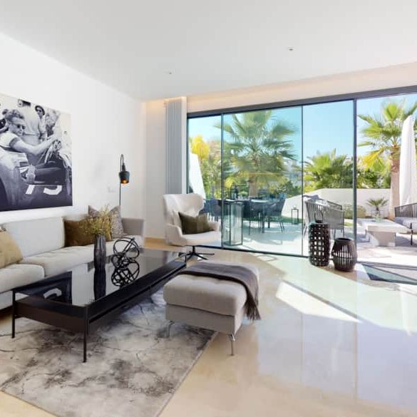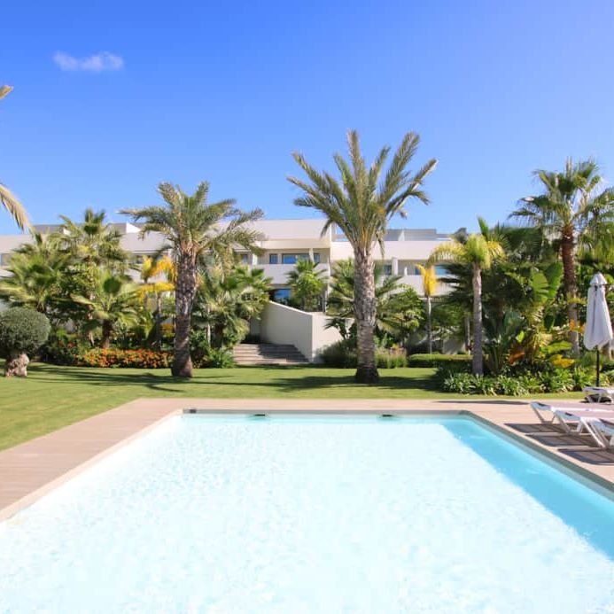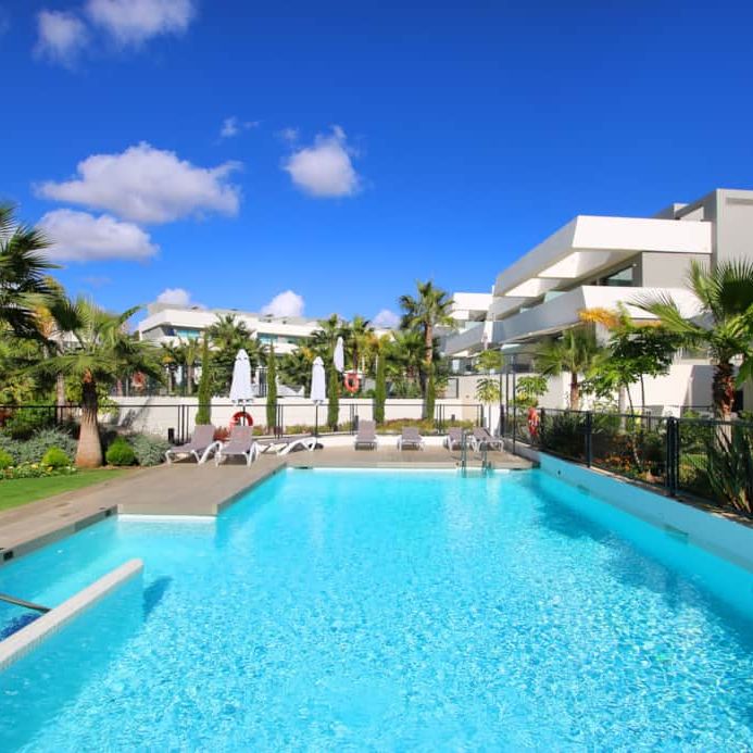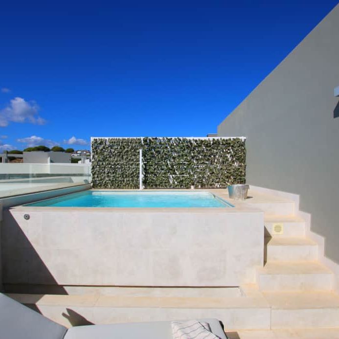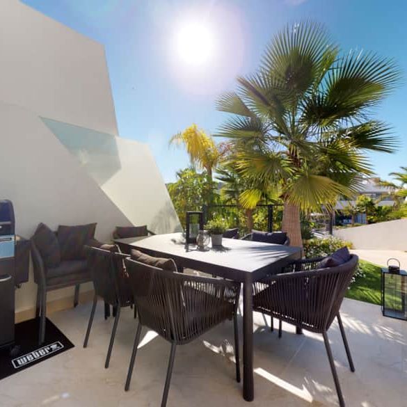The townhouses are arranged around the centralised tropical gardens, with an ample decked sunbathing area and 3 communal pools, all designed in the same contemporary style as the houses. The plot is in an elevated position and many of the townhouses offer sea views or views of the surrounding countryside and mountains. Ideally located just a short stroll to the local beach and a variety of shops, bars and restaurants.