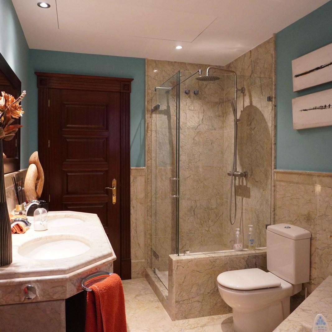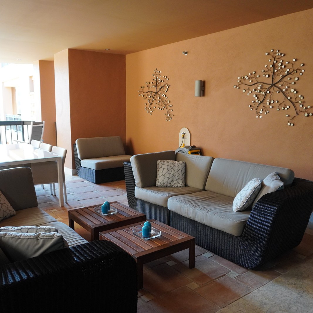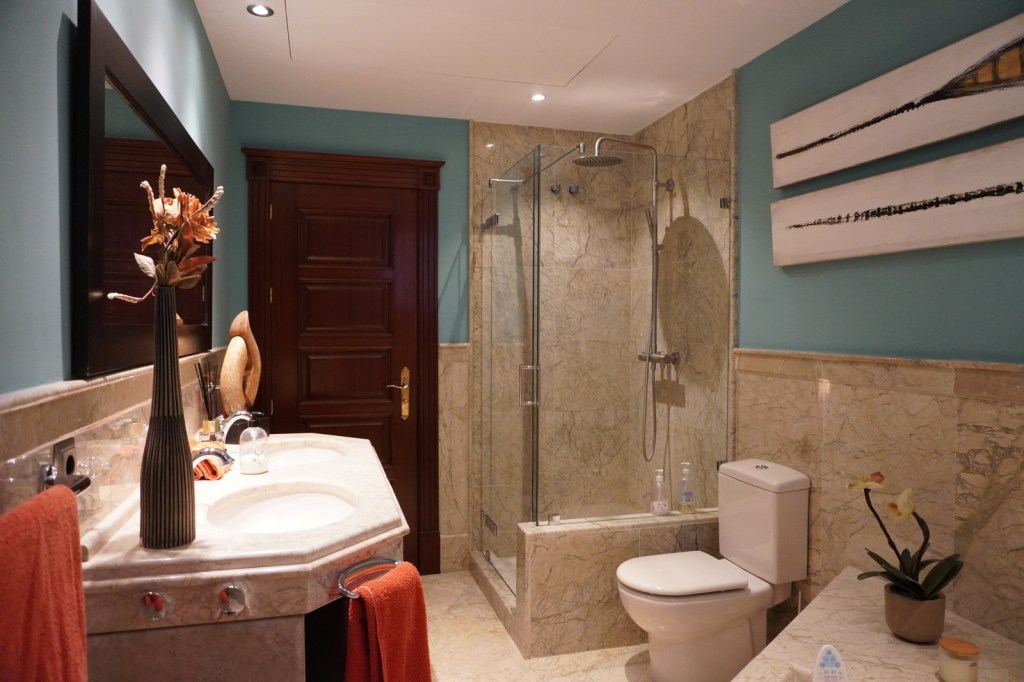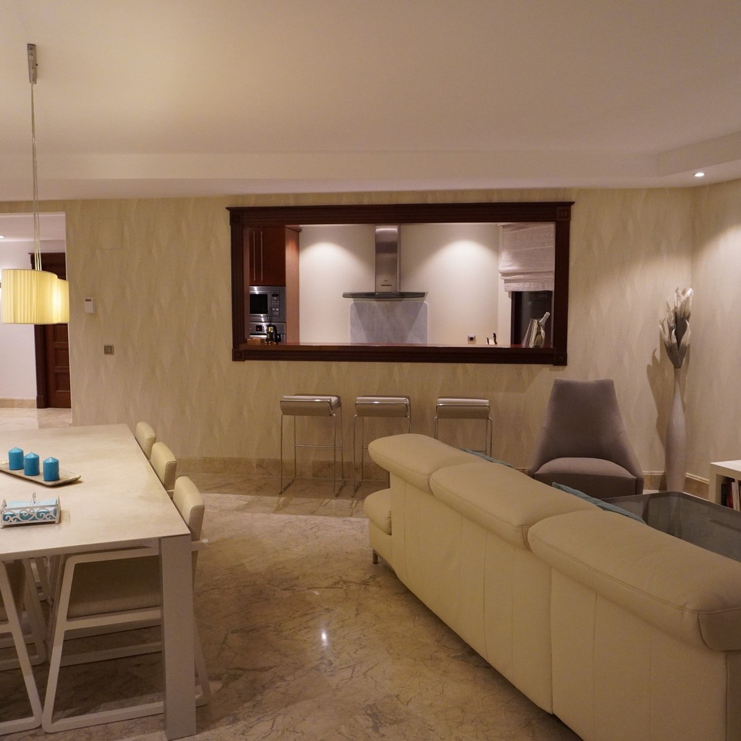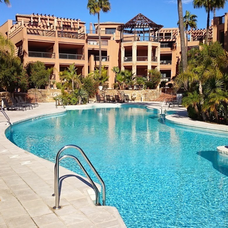 The apartment is bright and modern with 3 bedrooms, 2 bathrooms and 2 terraces. Spacious living room with access to a large terrace with dining area and sitting area. From the terrace there is a fantastic view of the garden, the pool and the Mediterranean Sea. The bedrooms have access to a west-facing terrace where you can enjoy the evening sun until it sets behind the mountains. There are double beds in all bedrooms. The apartment is located in the luxury complex Casablanca Beach, which consists of 61 apartments. The common areas have a beautiful lake-shaped pool and a 6,000 m2 tropical garden with direct access to the promenade and the beach. In the basement there is a large parking facility with 2 parking spaces for each apartment. There is a lift from the car park to the apartments. San Pedro de Alcantara is an idyllic village with narrow streets and pleasant sidewalk restaurants. Here you will find everything from small, cozy tapas bars to more exclusive eateries. There is also a large selection of restaurants along the seafront. From the apartment, it is a 40-minute walk to Puerto Banus, which is Spain’s answer to Saint Tropez. The luxury shops are lined up here – a shopper’s paradise. San Pedro de Alcantara is a dream for outdoor enthusiasts with many cycle paths and beautiful mountain areas that surround the town. Even the Romans loved the place and here you can find aqueducts and ruins from this time period. The highway goes in a tunnel under the town which makes San Pedro de Alcantara a quiet place with very little traffic. Above the tunnel, a large facility has been built with an outdoor stage, 6 playgrounds, a skateboard park and several restaurants. 2 blocks away is a fitness center with padel and tennis courts.