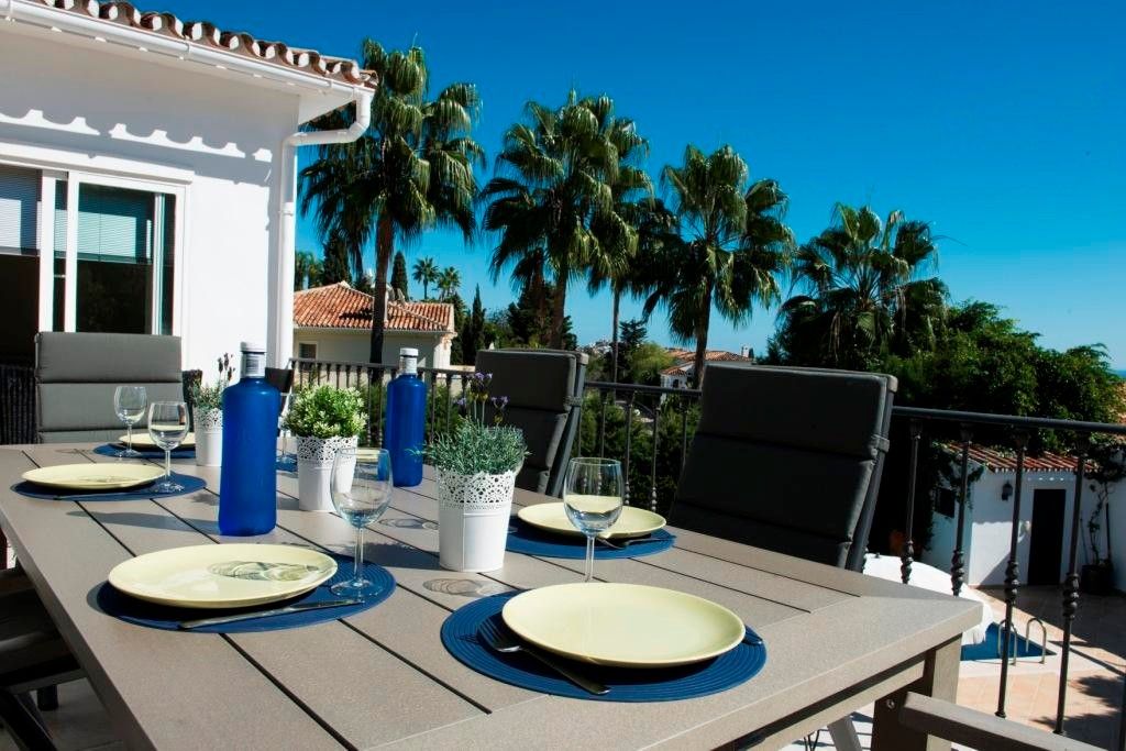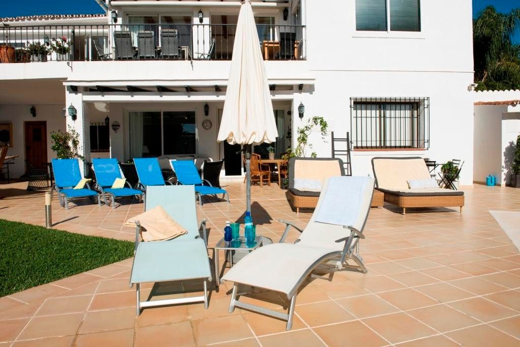 Casa Kasima in popular Calahonda between Málaga and Marbella is the place for large family gatherings, whether you want to gather several generations or take two or more families of friends on holiday together. Five bedrooms (originally six) with good sleeping places for fifteen people and four beautiful bathrooms provide room for large groups in a house where both floors can function as independent apartments with full-fledged kitchens and spacious living areas on both floors, furnished in Scandinavian style, where large window surfaces provides bright rooms and sea views from the top floor. In the garden there is a large swimming pool (4.5 m x 9 m plus stairs), a separate sauna with shower and large tiled areas for sunbathing and resting in sunbeds, deckchairs and a large hammock. On the lawn you can play badminton, croquet or billiards, and under the terrace there are darts and a table tennis table, so the garden area offers plenty of opportunities for joint activities. Externally, with a simple adaptation, there is stair-free access from the upper to the lower level, so that Casa Kasima fits well whether you have a pram or just have difficulty climbing stairs. The house is not fully adapted for wheelchair users, for example there are only 60 cm doors to the bathrooms, but if this is acceptable, the house can be rented out to families with a wheelchair user. Calahonda as a nearby area Calahonda is one of the most popular areas on the Sunshine Coast for Norwegians, located between the holiday towns of Marbella and Fuengirola. Casa Kasima is located a few meters from the 18-hole Cabopino Golf course, and it is a 15-20 minute walk down to Cabopino beach and the idyllic Cabopino harbor with yachts and restaurants and the protected sand dunes at Artola with beautiful footpaths built between the dunes. From the western end of Cabopino beach, the popular promenade runs towards Calahonda beach and on to La Cala de Mijas. From Casa Kasima there are also good hiking opportunities in the terrain around the golf course or up into the mountains. The Norwegian Seamen’s Church is half an hour’s walk away, there are a number of places to eat close to the Seamen’s Church. The Costa del Sol and the rest of Andalusia The Solkysten has earned its name with 320 annual sunny days, but also offers plenty of activity opportunities. For families with children, there are a number of options in the form of water parks, zoos and the like. Málaga city has become the city of museums with around thirty museums that will attract those interested in culture, where the Picasso Museum, the cathedral, the Roman amphitheater, the Arab castle and castle and excavated Phoenician buildings are just some of the attractions. If you travel a little inland from the coast, you will find dozens of white towns (pueblos blancos), of which Ronda, Mijas Pueblo and Frigilliana are among the most famous. Antequera is located up in the mountains behind Málaga and offers 2-3,000-year-old burial sites as well as a great castle and fortress complex, and with a wolf park and the unique mountain area of El Torcal nearby. Europe’s biggest tourist attraction is only two hours away by car, it is the Alhambra palace complex in Granada, and Córdoba which has a total of four world heritage attractions with the magnificent Mesquita (mosque cathedral) as the most famous, or Seville with the world’s largest Gothic cathedral. For families with children, a trip to Gibraltar will be high on the wish list with Europe’s only wild monkeys and exciting stalactite caves up in the Rock of Gibraltar and a small piece of British society in the city with typical English pubs and Marks & Spencer along the main street.
